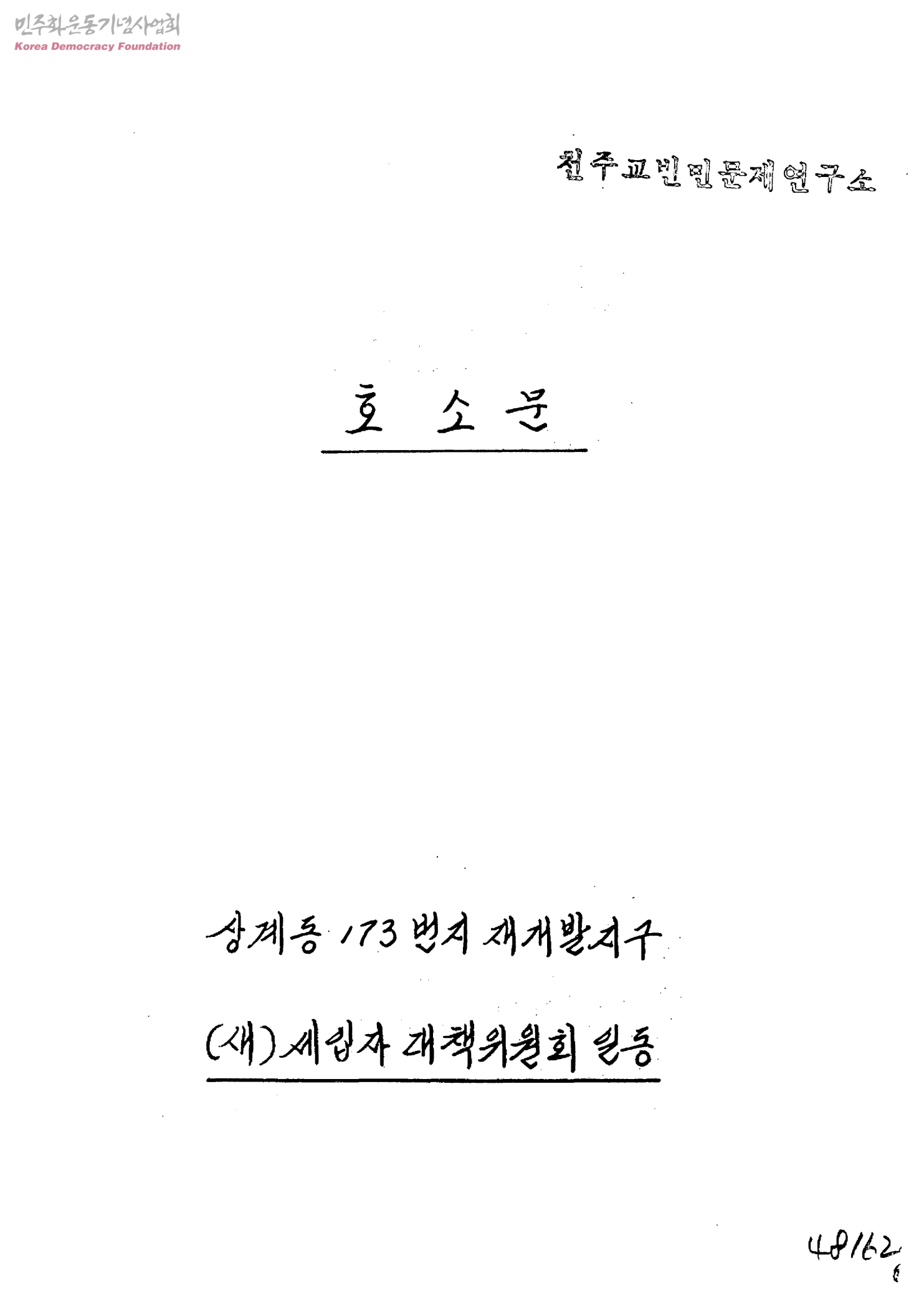 - 상계동173번지재개발지구(새)세입자대책위원회 회장 황길구