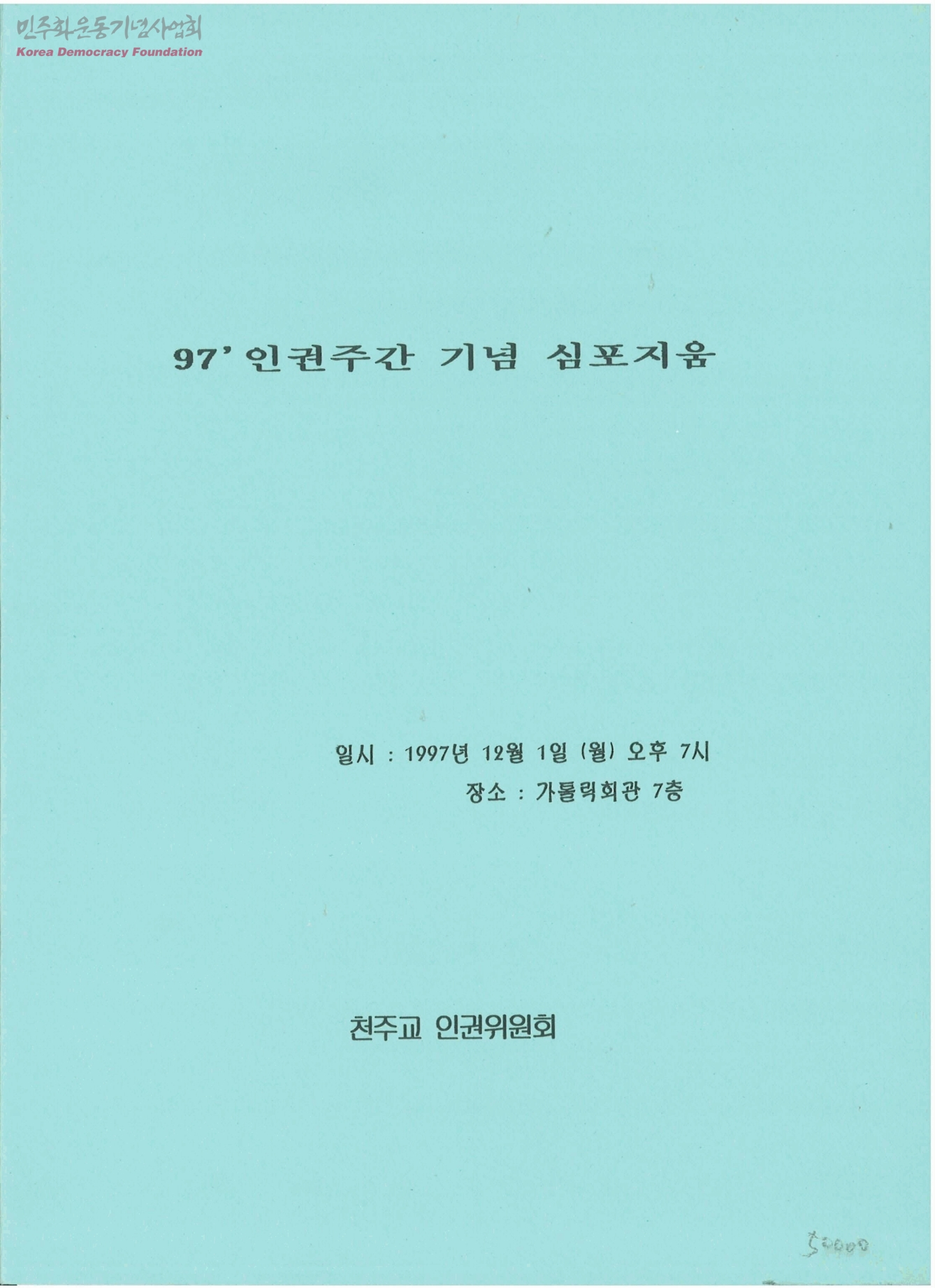 97' 인권주간 기념 심포지움['성서에 나타난 인권과 정의', '현대 국제사회에 있어서의 인권문제, '한국가톨릭교회의 인권운동']