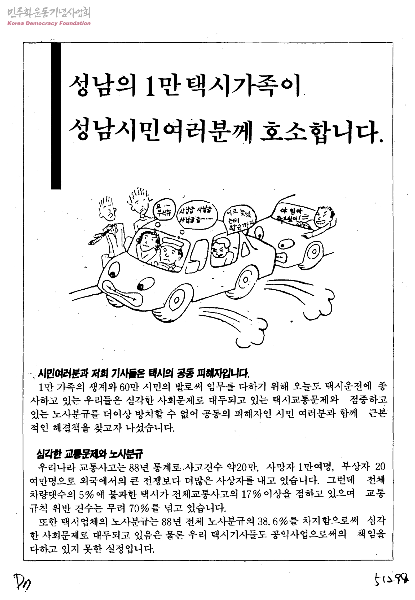 성남의 1만 택시가족이 성남시민여러분께 호소합니다.
