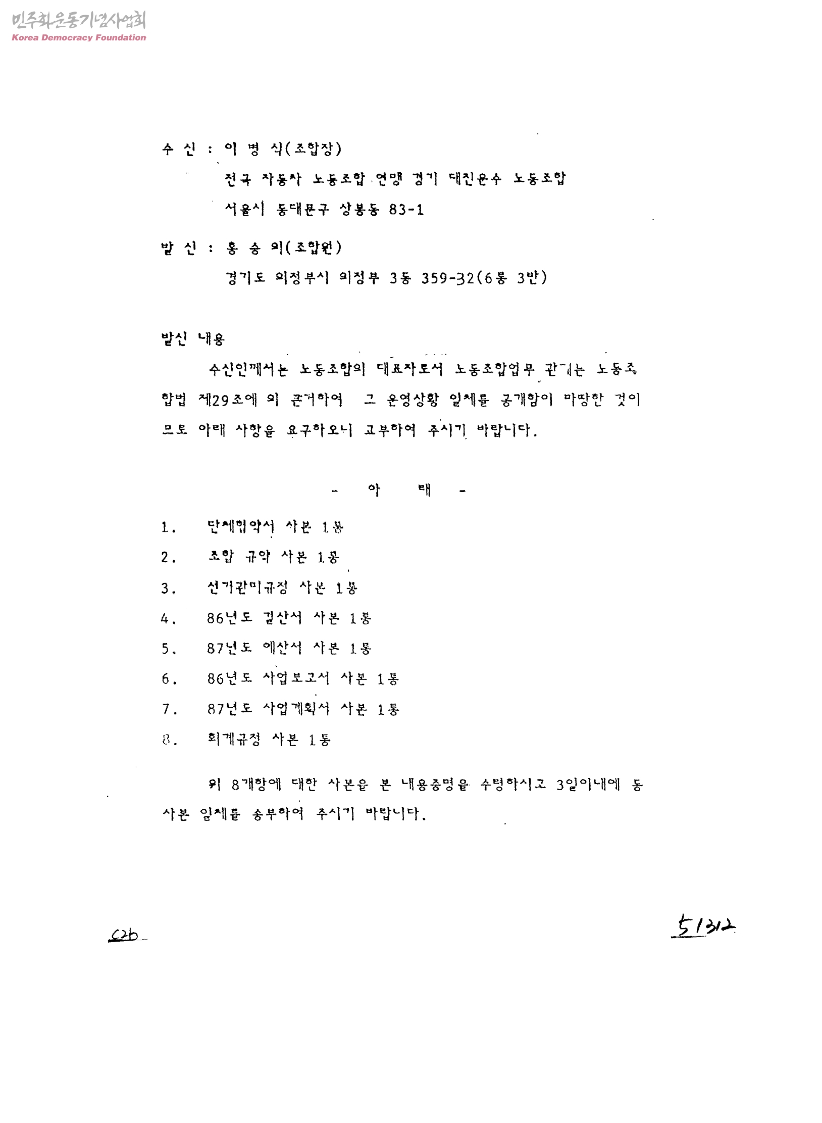 [내용증명요청][수신:이병식(조합장), 발신:홍승의(조합원)]