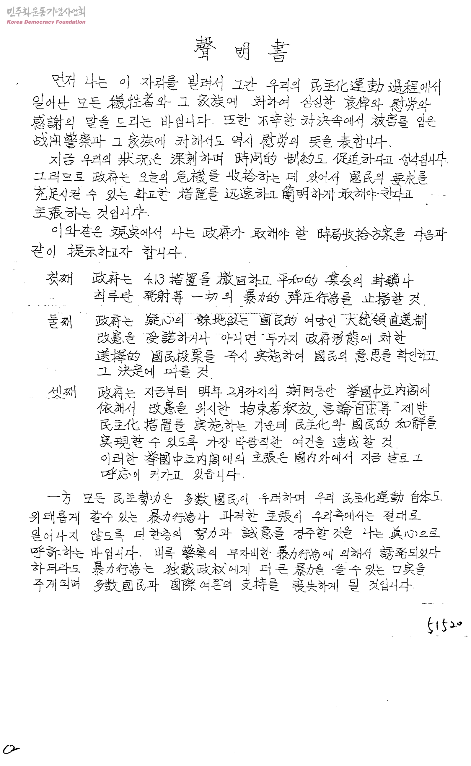 聲明書[87년 6.10항쟁 관련]