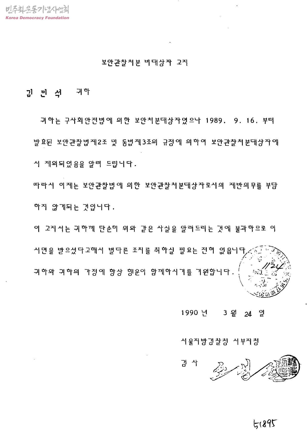 보안관찰처분 비대상자 고지