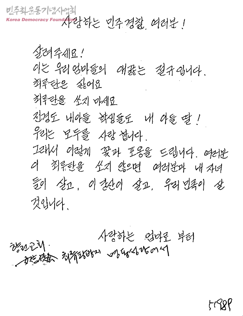 - 생산자 및 기증자가 ‘박용수’인 사진의 사용은 구매신청을 클릭하여 직접 사진 구매 신청을 하실 수 있습니다. 생산자 및 기증자가 ‘경향신문사’인 사진의 사용은 경향신문사 담당자(02-3701-1635)를 통해 구매하실 수 있습니다. 그 외의 생산자 및 기증자는 민주화운동기념사업회 사료관 담당자( hyunchaek@kdemo.or.kr / 02-6440-8961 )에 문의바랍니다.