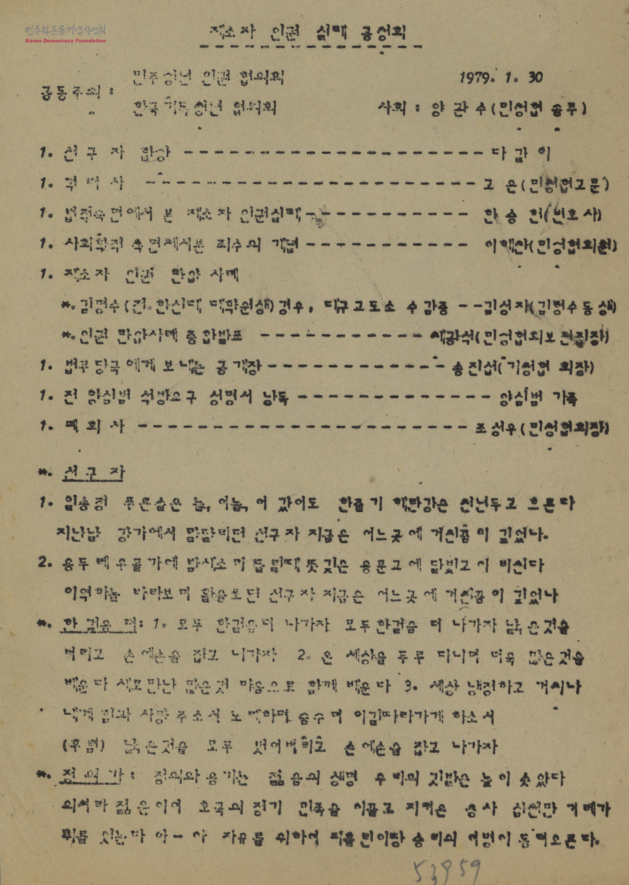 - 민주청년 인권 협의회 한국기독청년 협의회