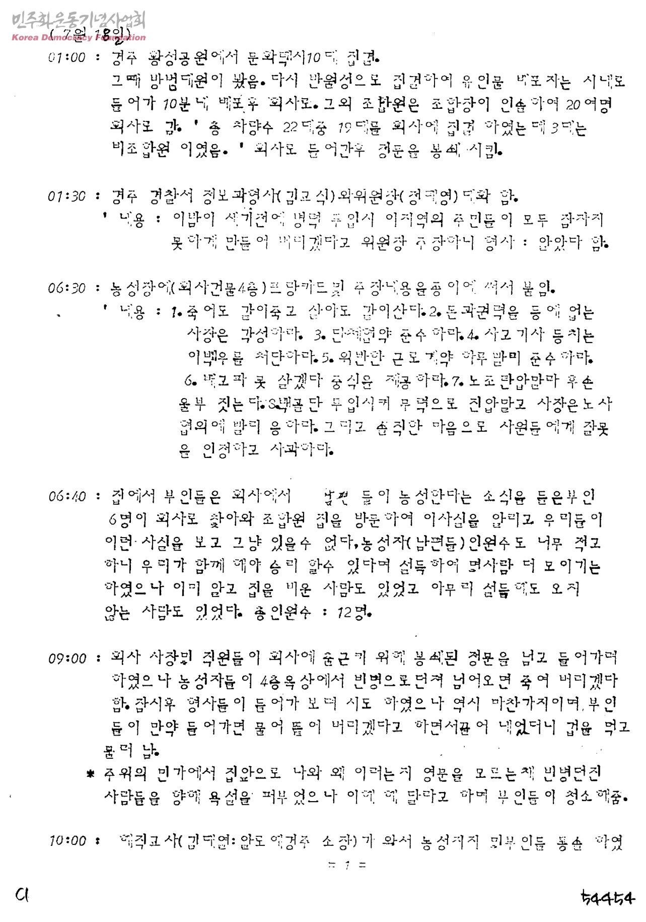 [전국자동차노동조합연맹 경주, 월성지역 택시분실 파업일지]