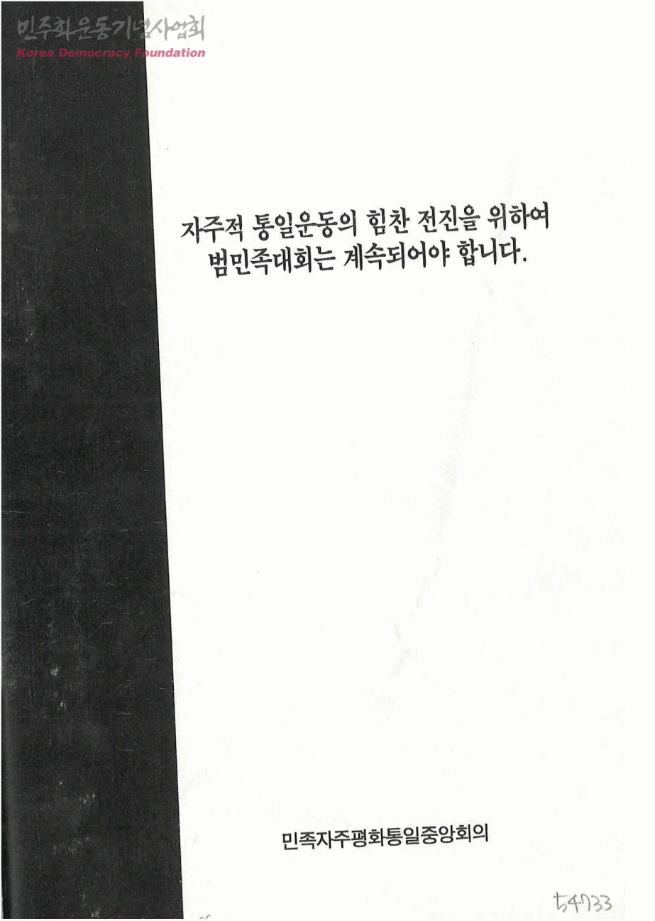 자주적 통일운동의 힘찬 전진을 위하여 범민족대회는 계속되어야 합니다
