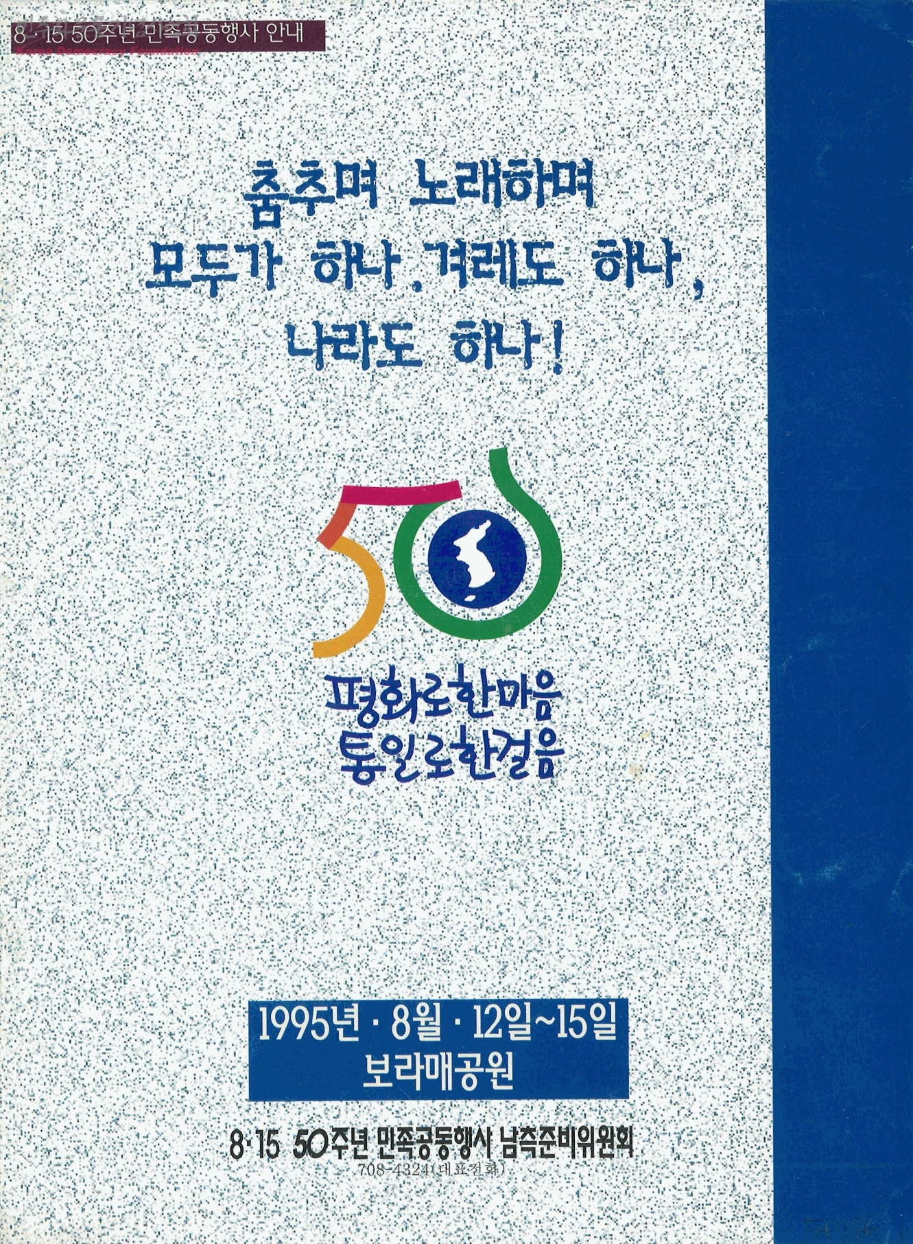 8·15 50주년 민족공동행사 안내-춤추며 노래하며 모두가 하나. 겨레도 하나, 나라도 하나