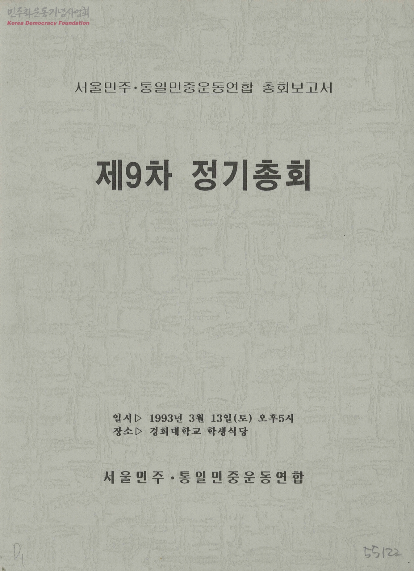 서울민주ㆍ통일민중운동연합 총회보고서-제9차 정기총회