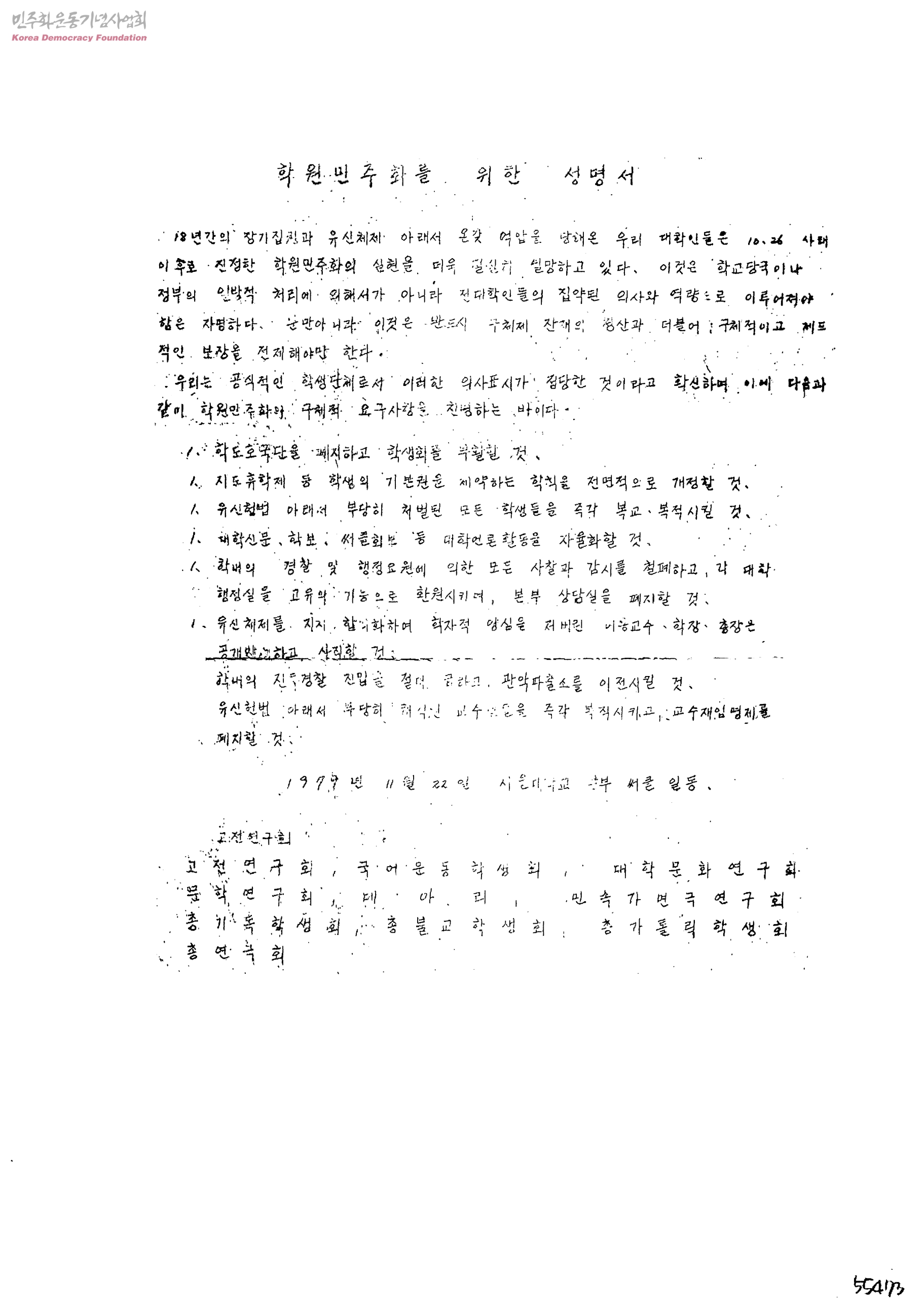 학원민주화를 위한 성명서