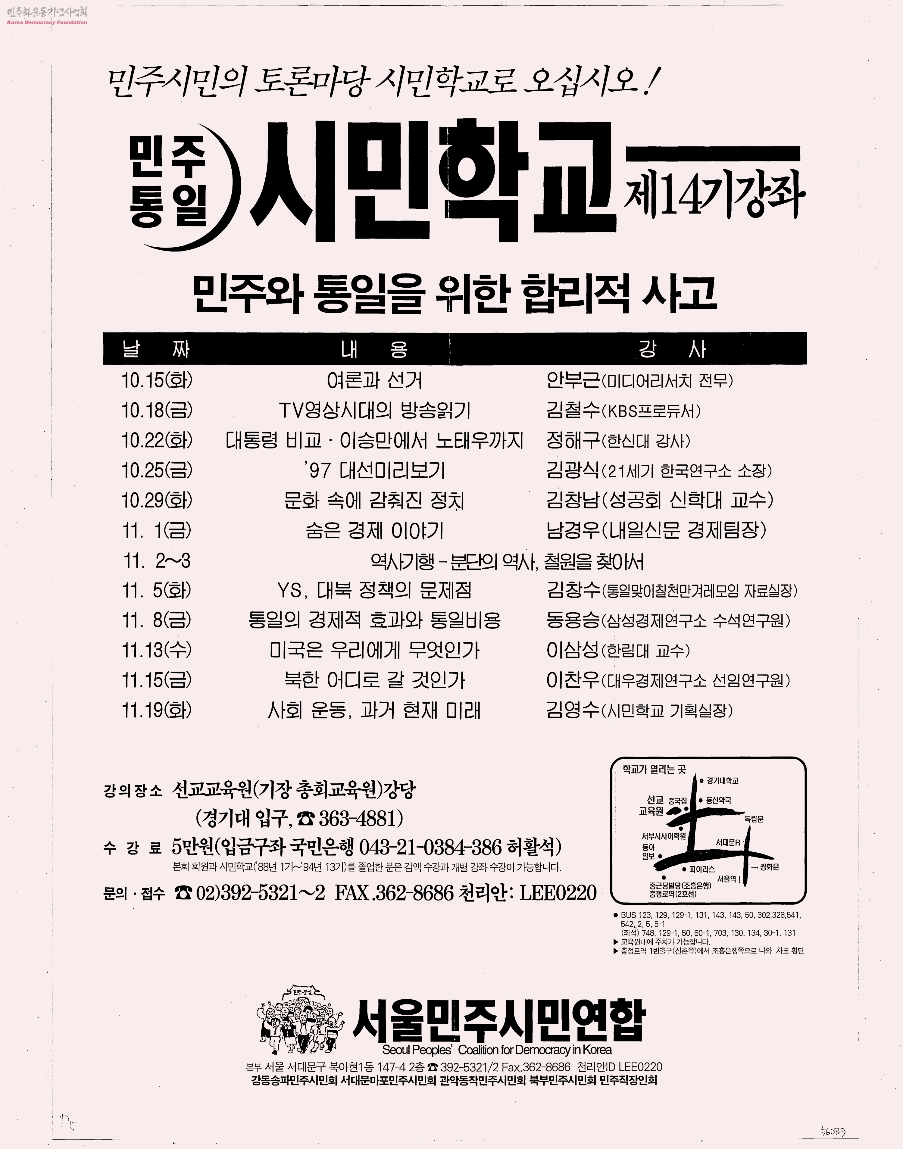민주통일 시민학교 제14기 강좌-민주와 통일을 위한 합리적 사고