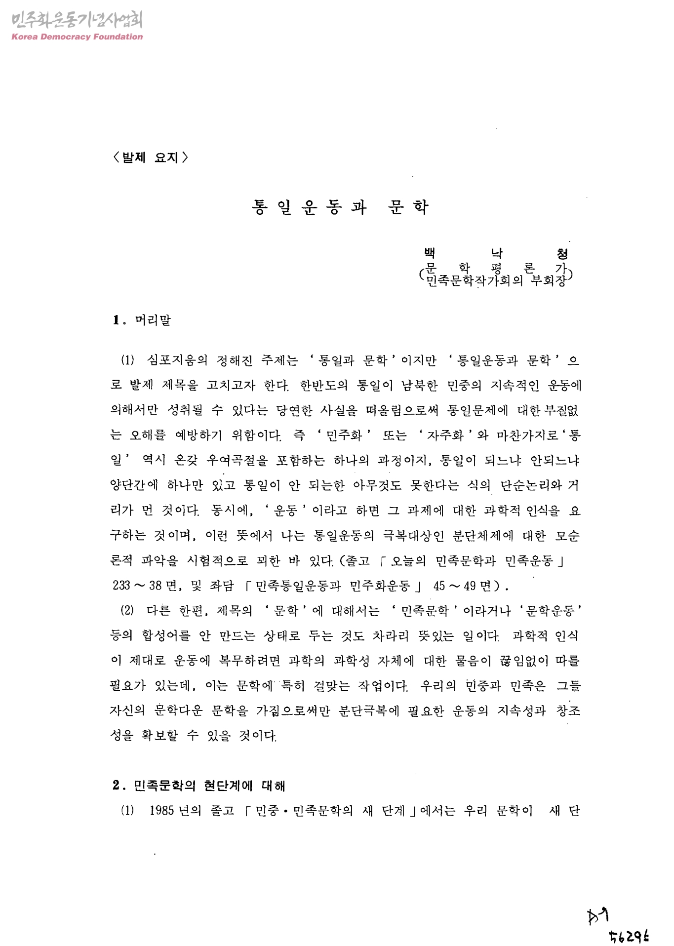통일운동과 문학
