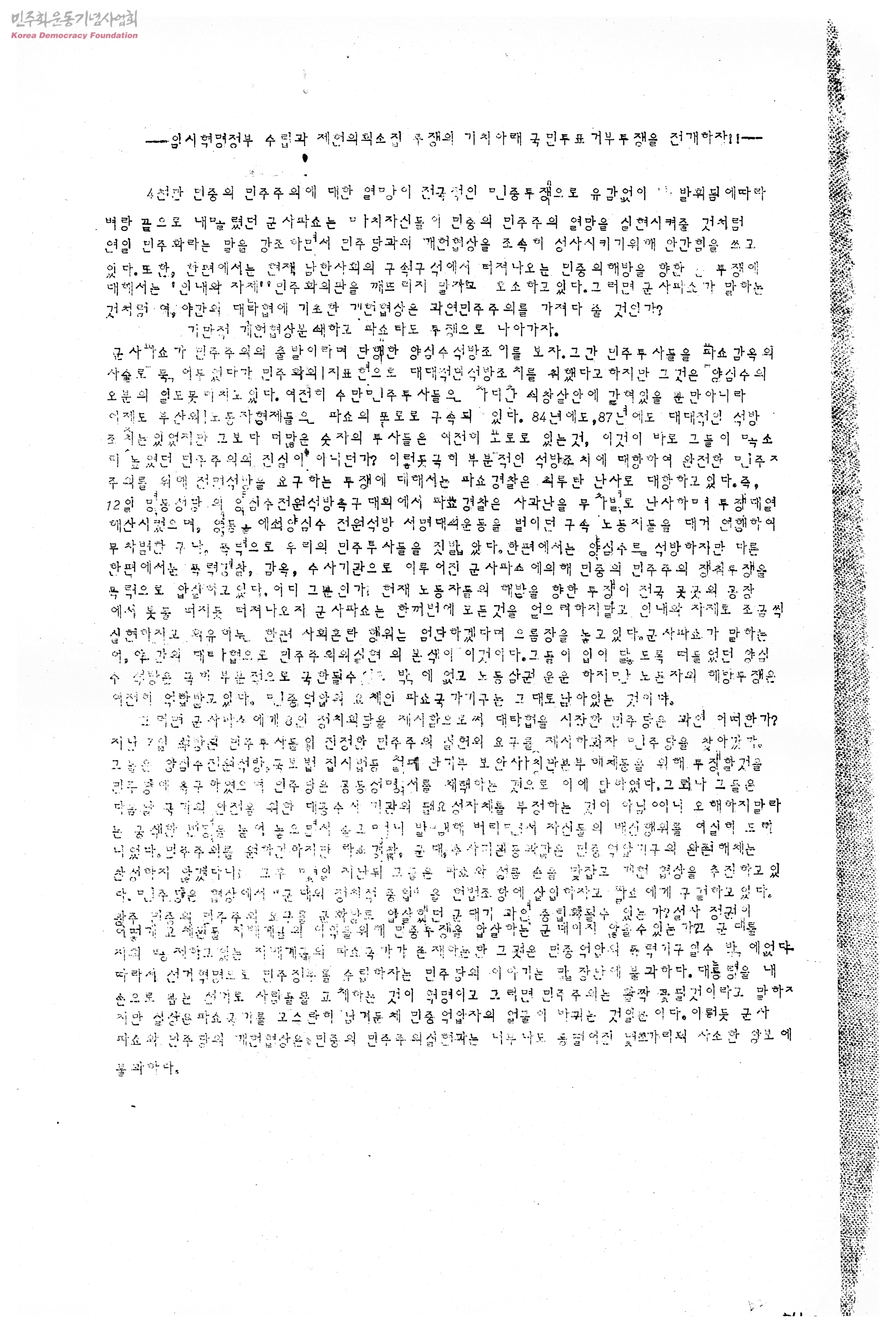 임시혁명정부 수립과 제헌의회소집 투쟁의 기치아래 국민투표 거부투쟁을 전개하자!!