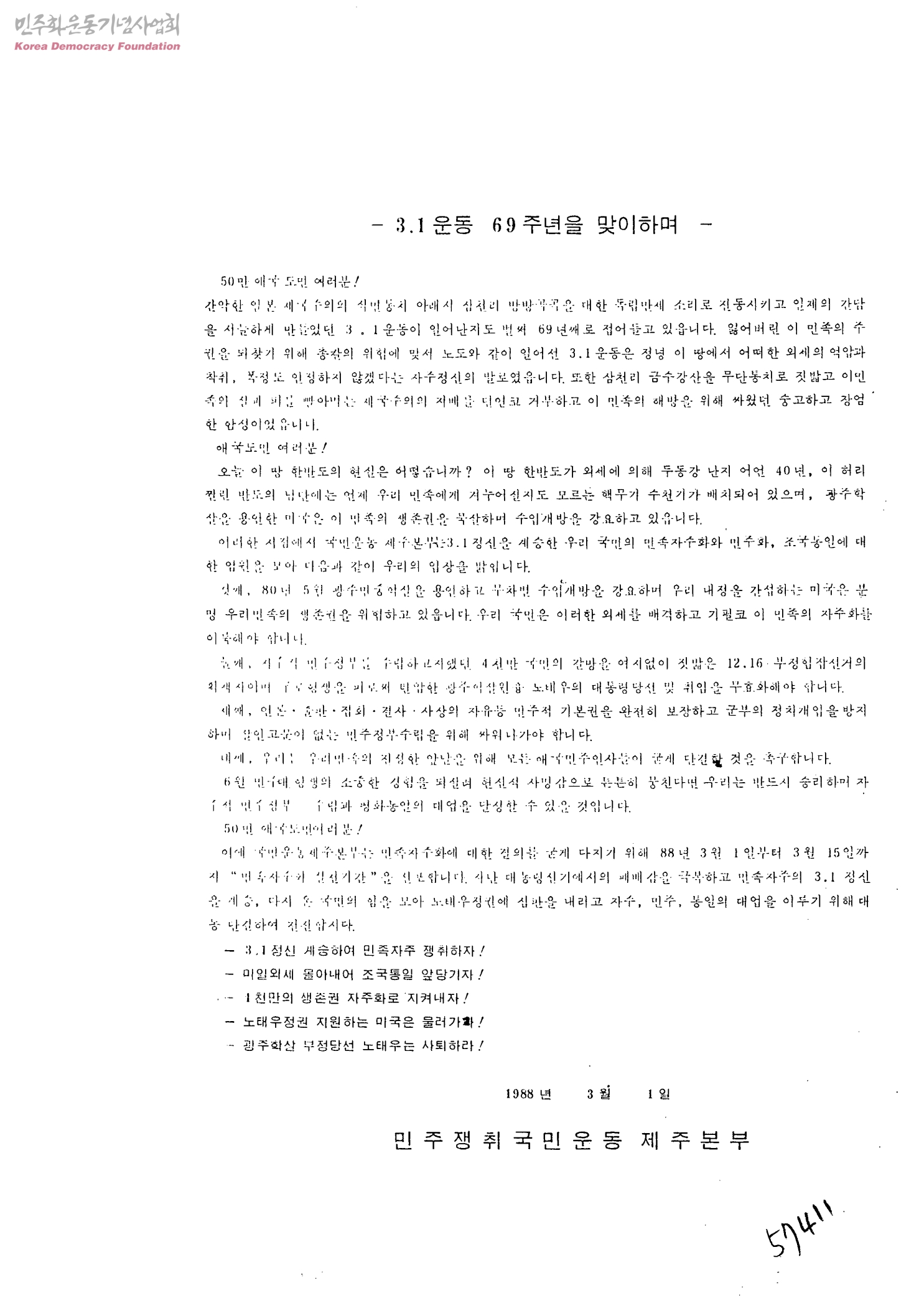 - 생산자 및 기증자가 ‘경향신문사’인 사진의 사용은 경향신문사 담당자(02-3701-1635)를 통해 구매하실 수 있습니다. 그 외의 생산자 및 기증자는 민주화운동기념사업회 사료관 담당자( hyunchaek@kdemo.or.kr / 02-6440-8961 )에게 문의바랍니다.