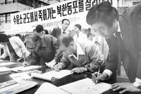- 생산자 및 기증자가 ‘박용수’인 사진의 사용은 구매신청을 클릭하여 직접 사진 구매 신청을 하실 수 있습니다. 생산자 및 기증자가 ‘경향신문사’인 사진의 사용은 경향신문사 담당자(02-3701-1635)를 통해 구매하실 수 있습니다. 그 외의 생산자 및 기증자는 민주화운동기념사업회 사료관 담당자( h_jungwon@kdemo.or.kr / 031-361-9586 )에 문의바랍니다.