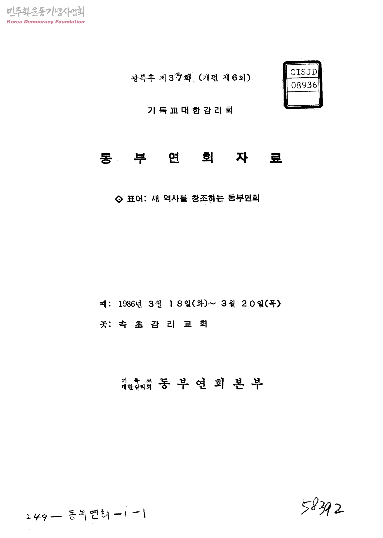 광복후 제37회(개편 제6회) 기독교대한감리회 동부연회자료
