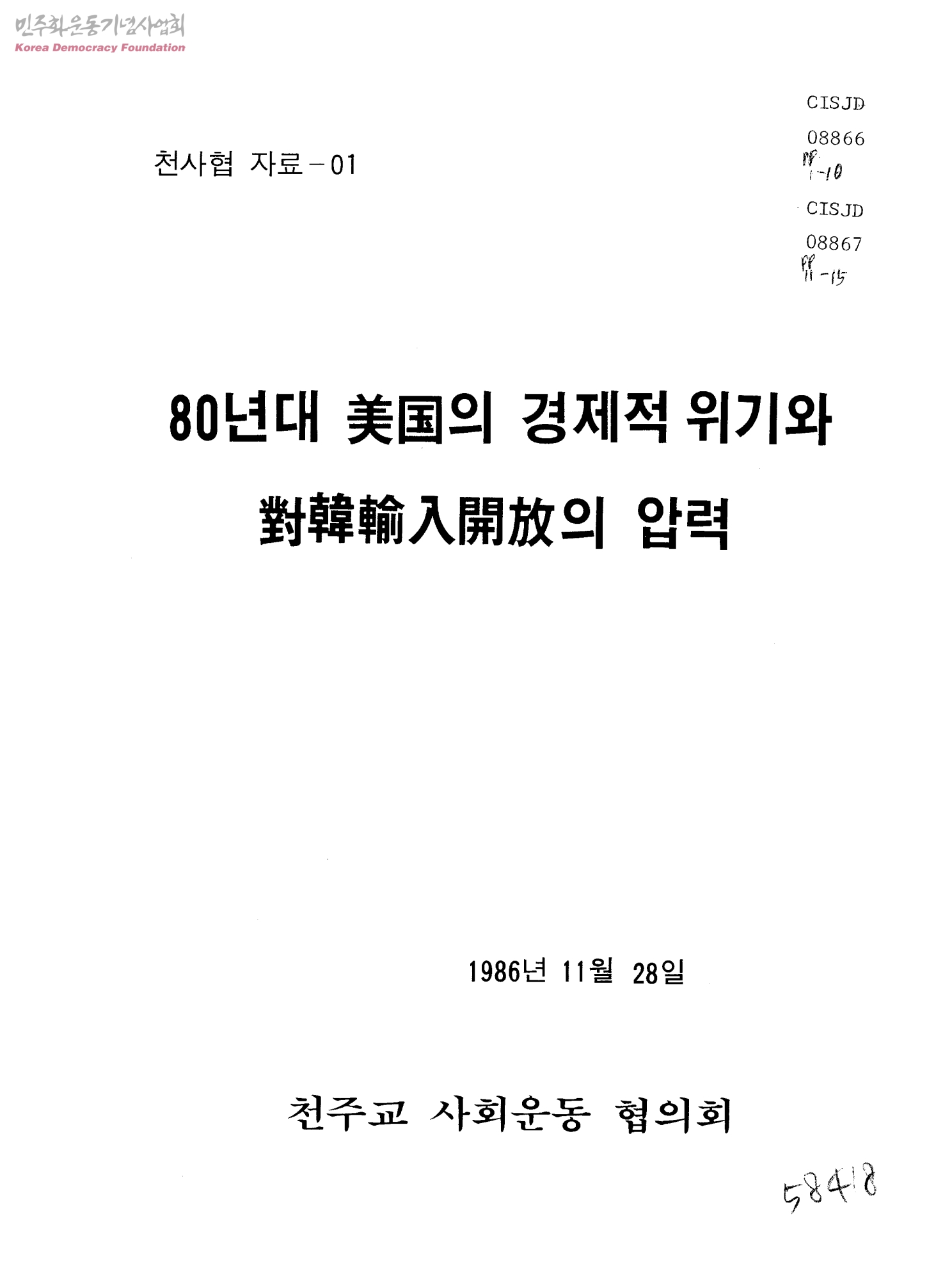 천사협 자료01- 80년대 美國의 경제적 위기와 對韓輸入開放의 압력