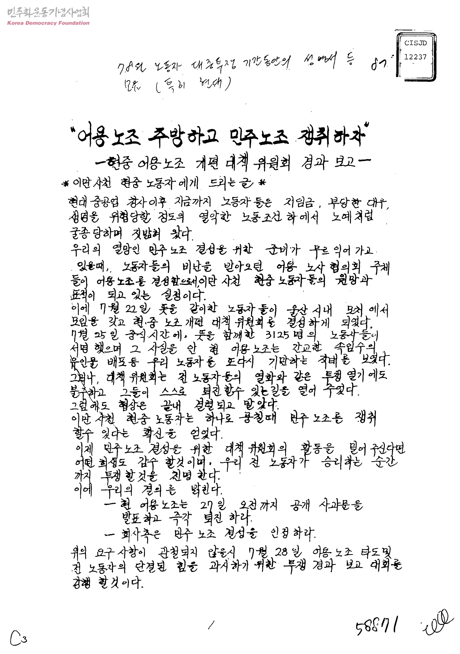 7.8월 노동자 대중투쟁 기간동안의 성명서 등 모음(특히 현대)