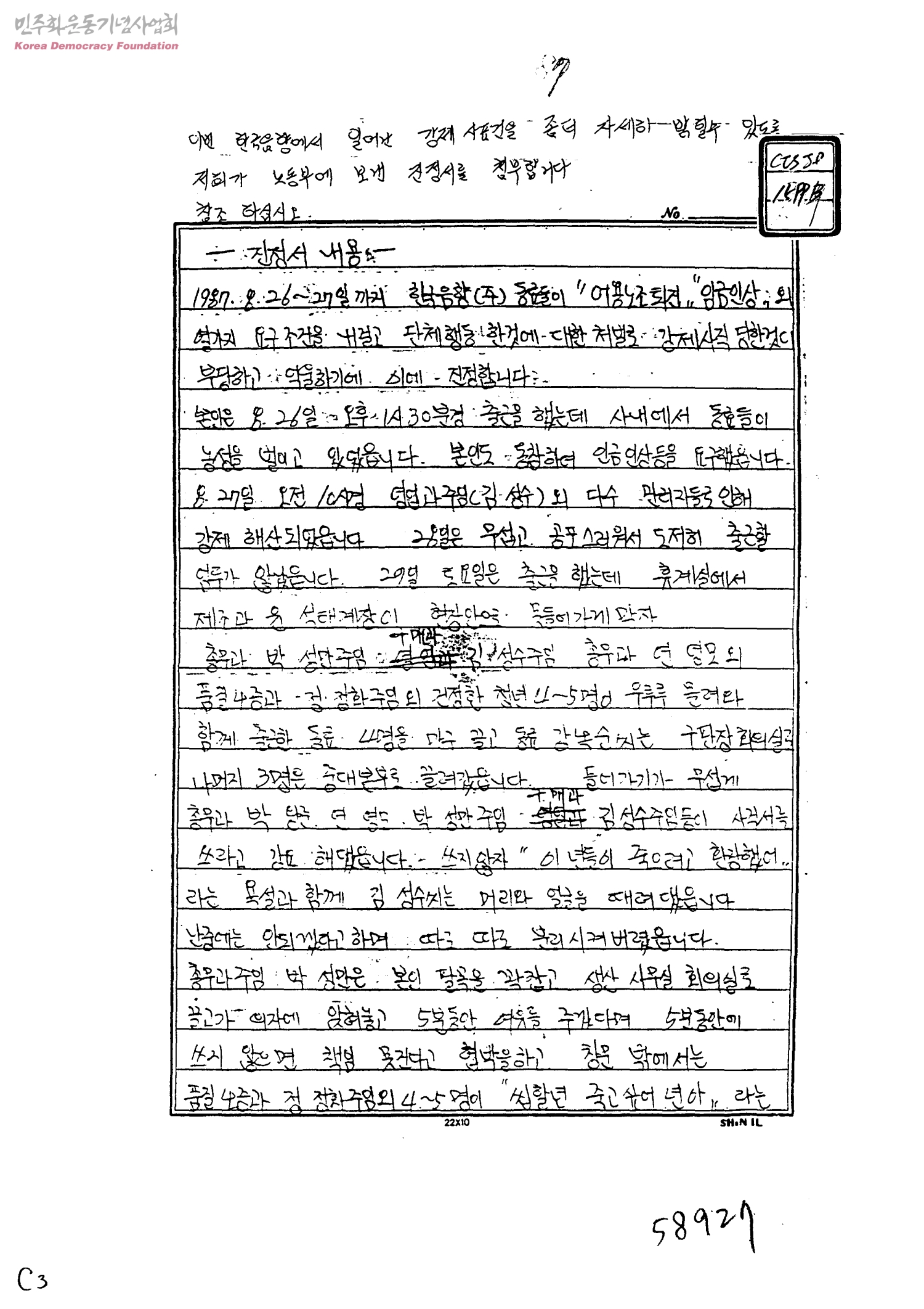- 생산자 및 기증자가 ‘경향신문사’인 사진의 사용은 경향신문사 담당자(02-3701-1635)를 통해 구매하실 수 있습니다. 그 외의 생산자 및 기증자는 민주화운동기념사업회 사료관 담당자( hyunchaek@kdemo.or.kr / 02-6440-8961 )에게 문의바랍니다.