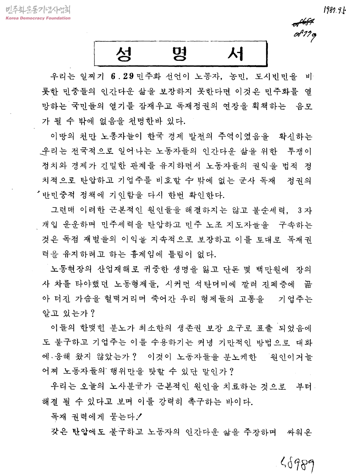 - 생산자 및 기증자가 ‘박용수’인 사진의 사용은 구매신청을 클릭하여 직접 사진 구매 신청을 하실 수 있습니다. 생산자 및 기증자가 ‘경향신문사’인 사진의 사용은 경향신문사 담당자(02-3701-1635)를 통해 구매하실 수 있습니다. 그 외의 생산자 및 기증자는 민주화운동기념사업회 사료관 담당자( hyunchaek@kdemo.or.kr / 02-6440-8961 )에 문의바랍니다.