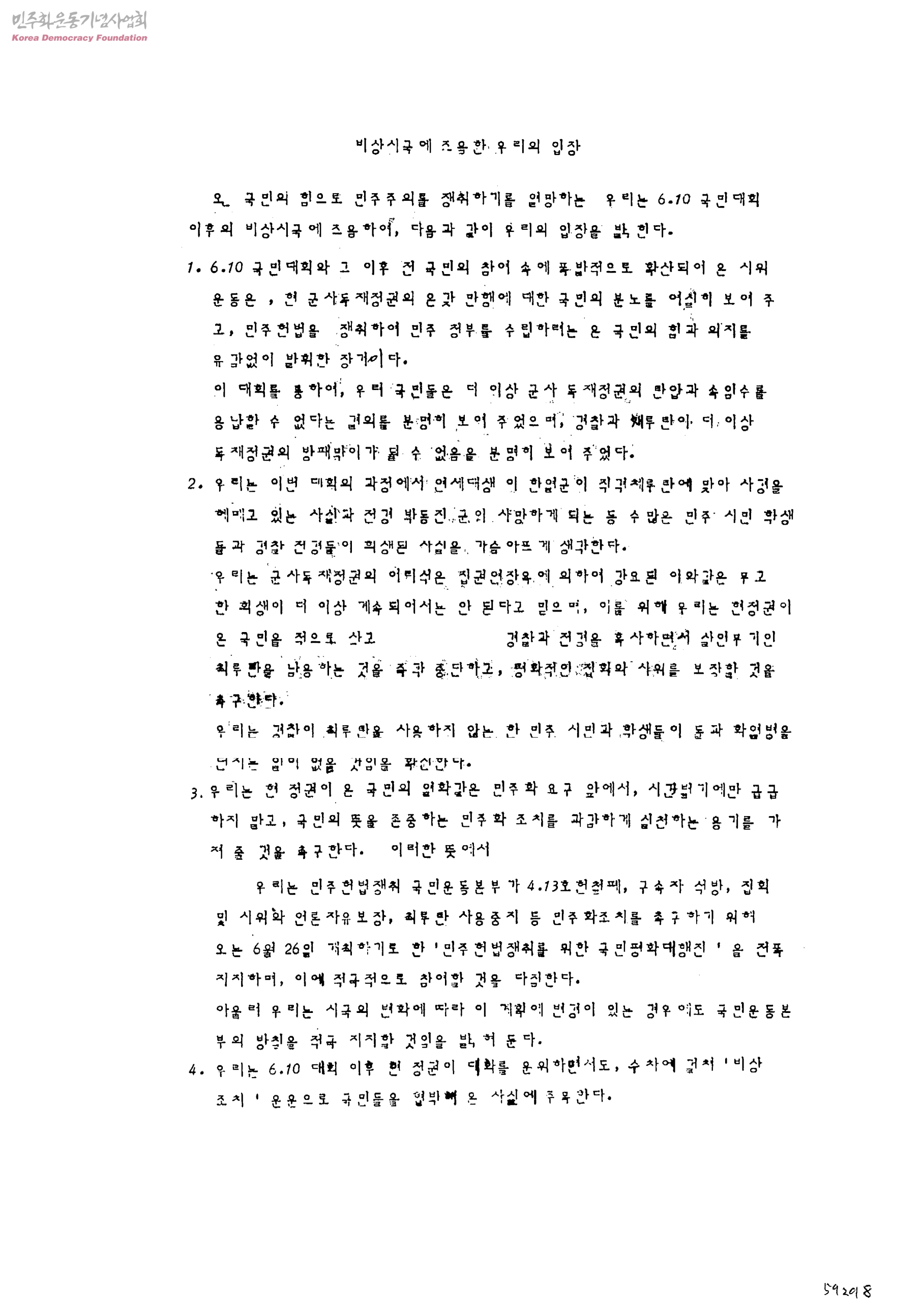 비상시국에 즈음한 우리의 입장