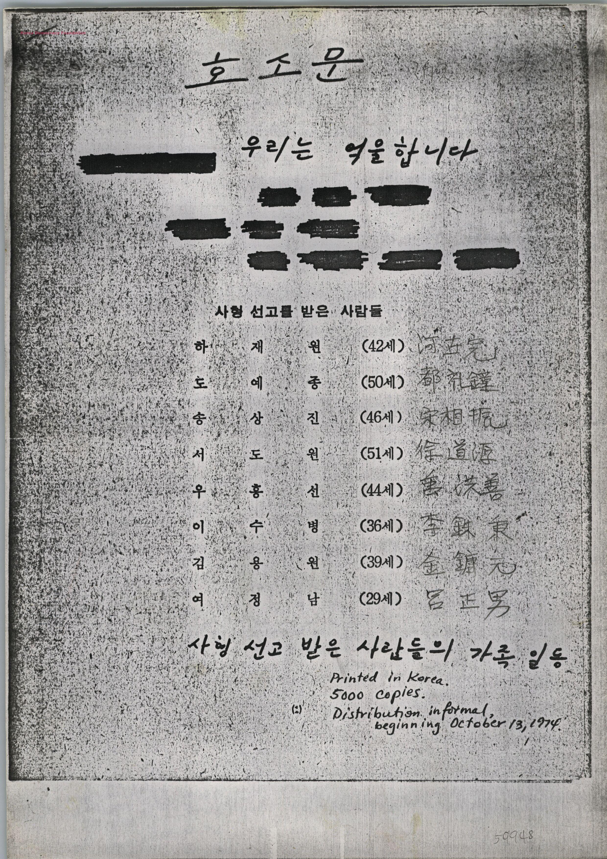 [인혁당사건의 전말과 고소된 사람들의 억울함을 호소]