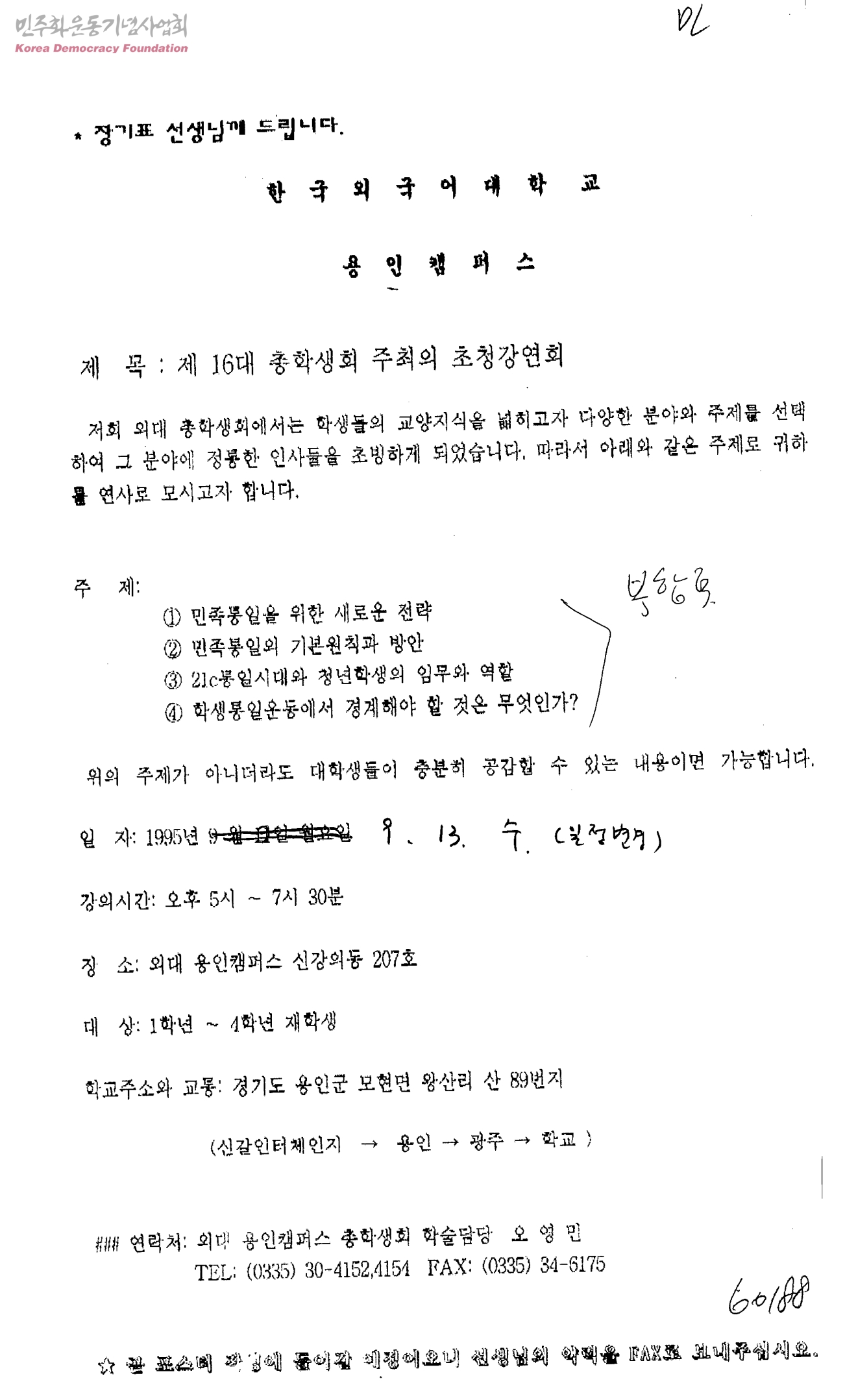 제16대 총학생회 주최의 초청강연회