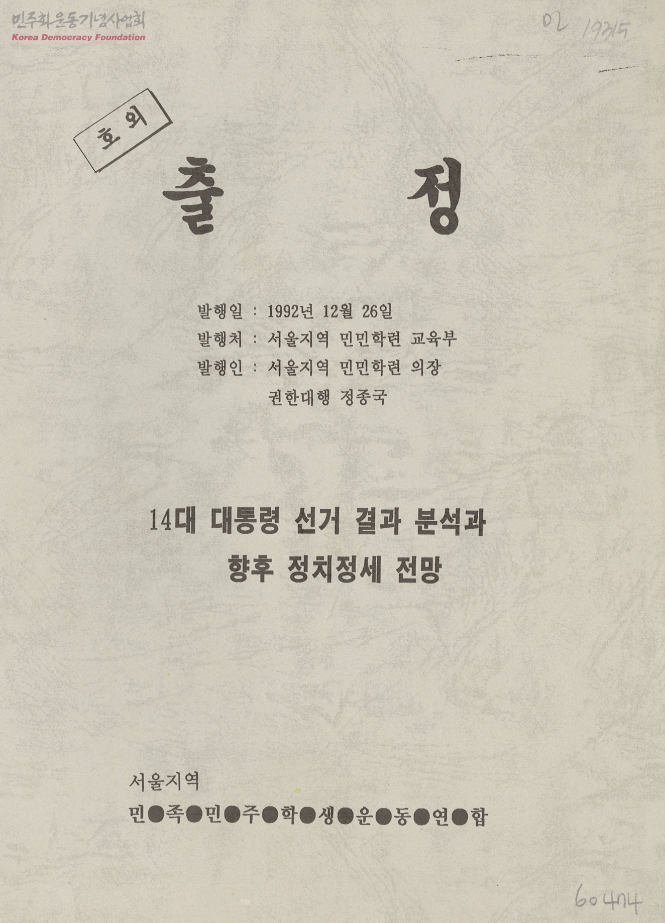 출정 호외-14대 대통령 선거 결과 분석과 향후 정치정세 전망