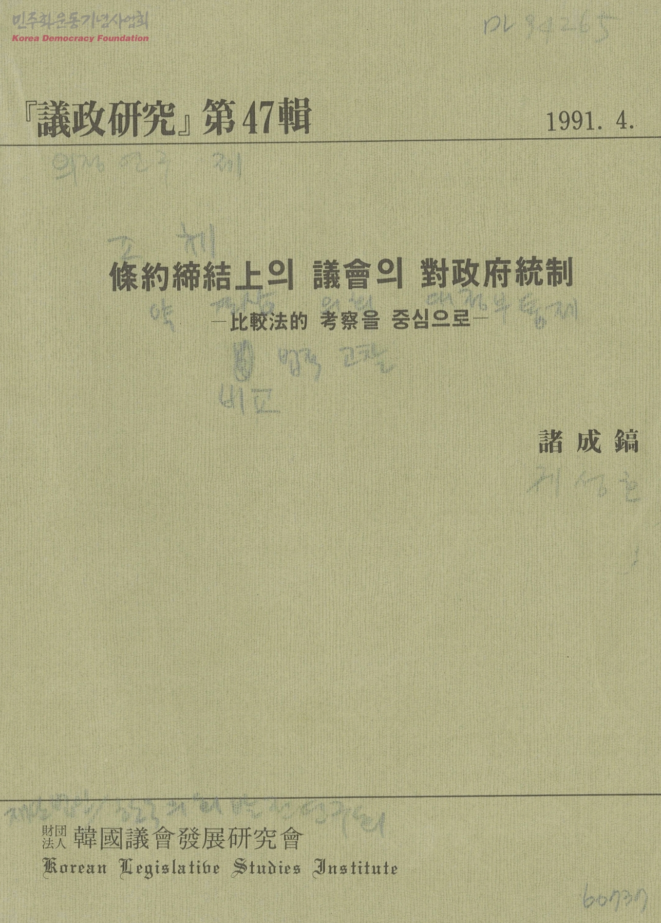 條約締結上의 議會의 對政府統制-比較法 的考察을 중심으로