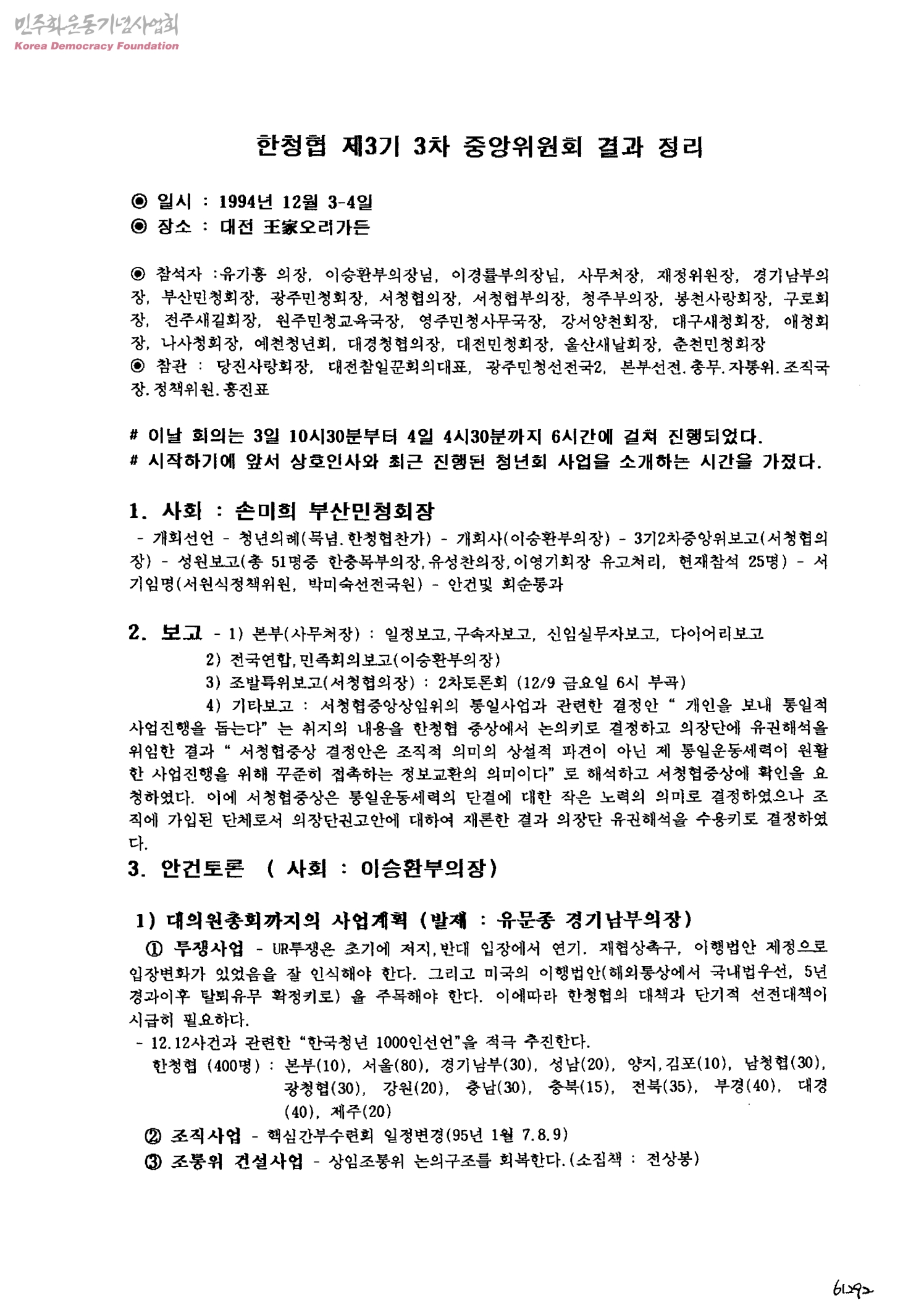 한국민주청년단체협의회 제3기 3차 중앙위원회 결과 정리
