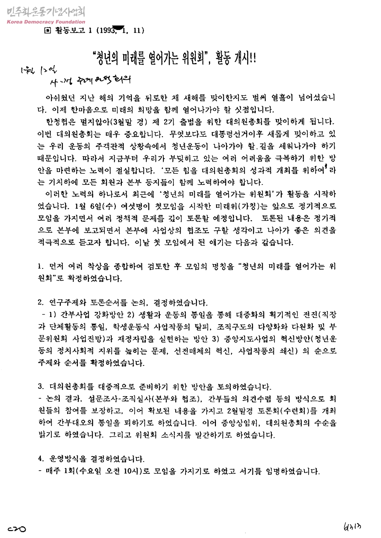 활동보고1-청년의 미래를 열어가는 위원회, 활동개시
