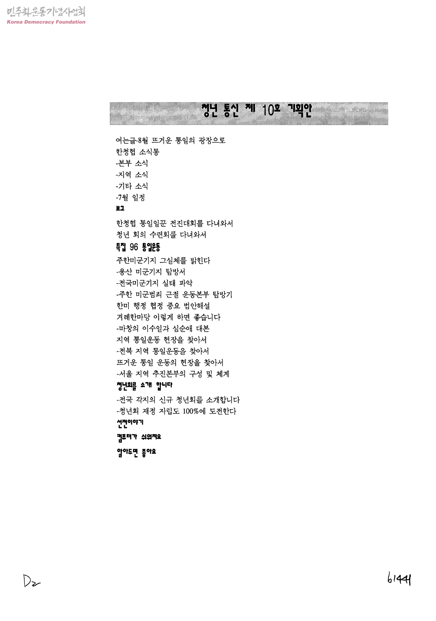 청년 통신 제10호 기획안