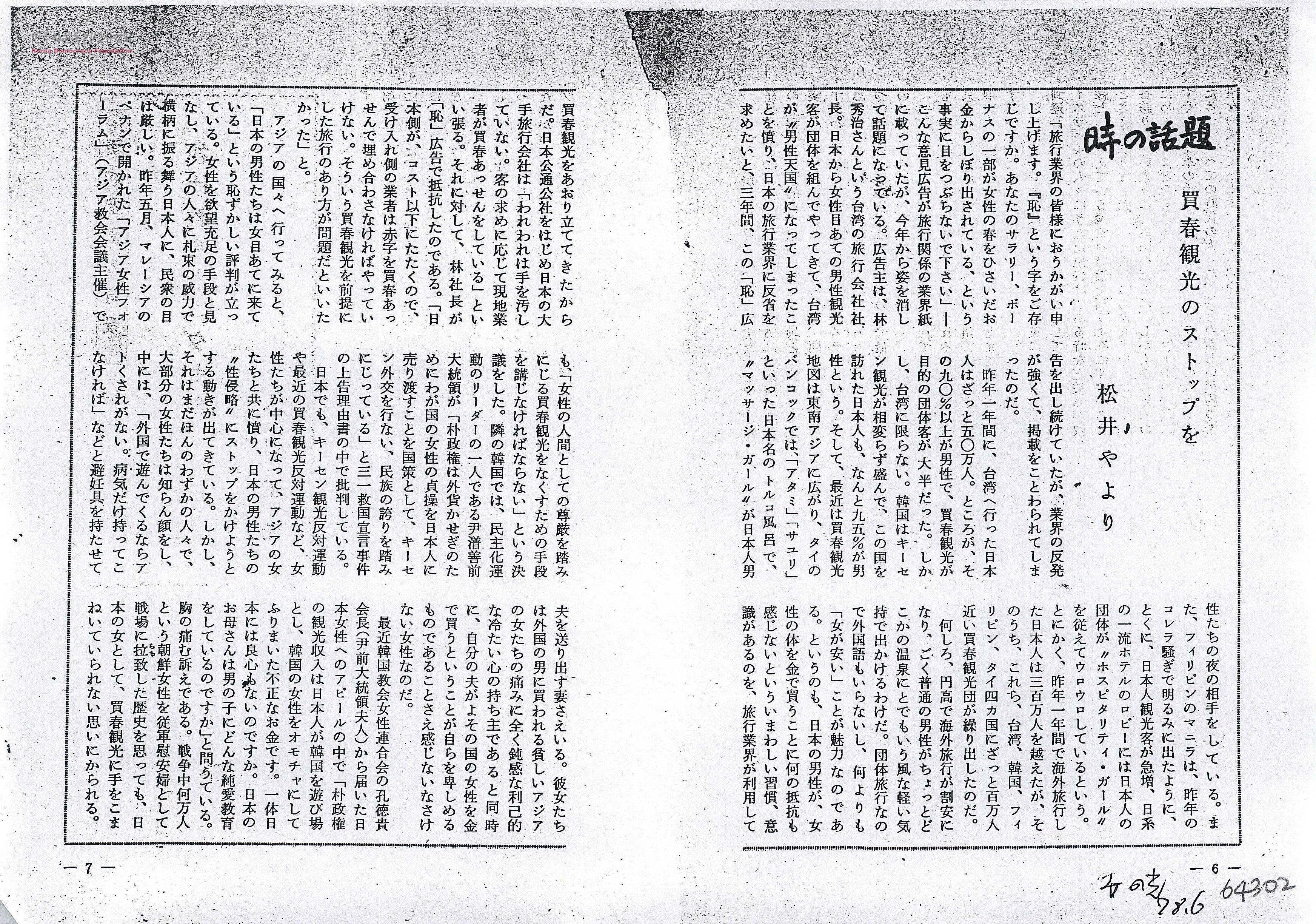 詩の話題_買春觀光のストップを, 韓國の鬪う母たち