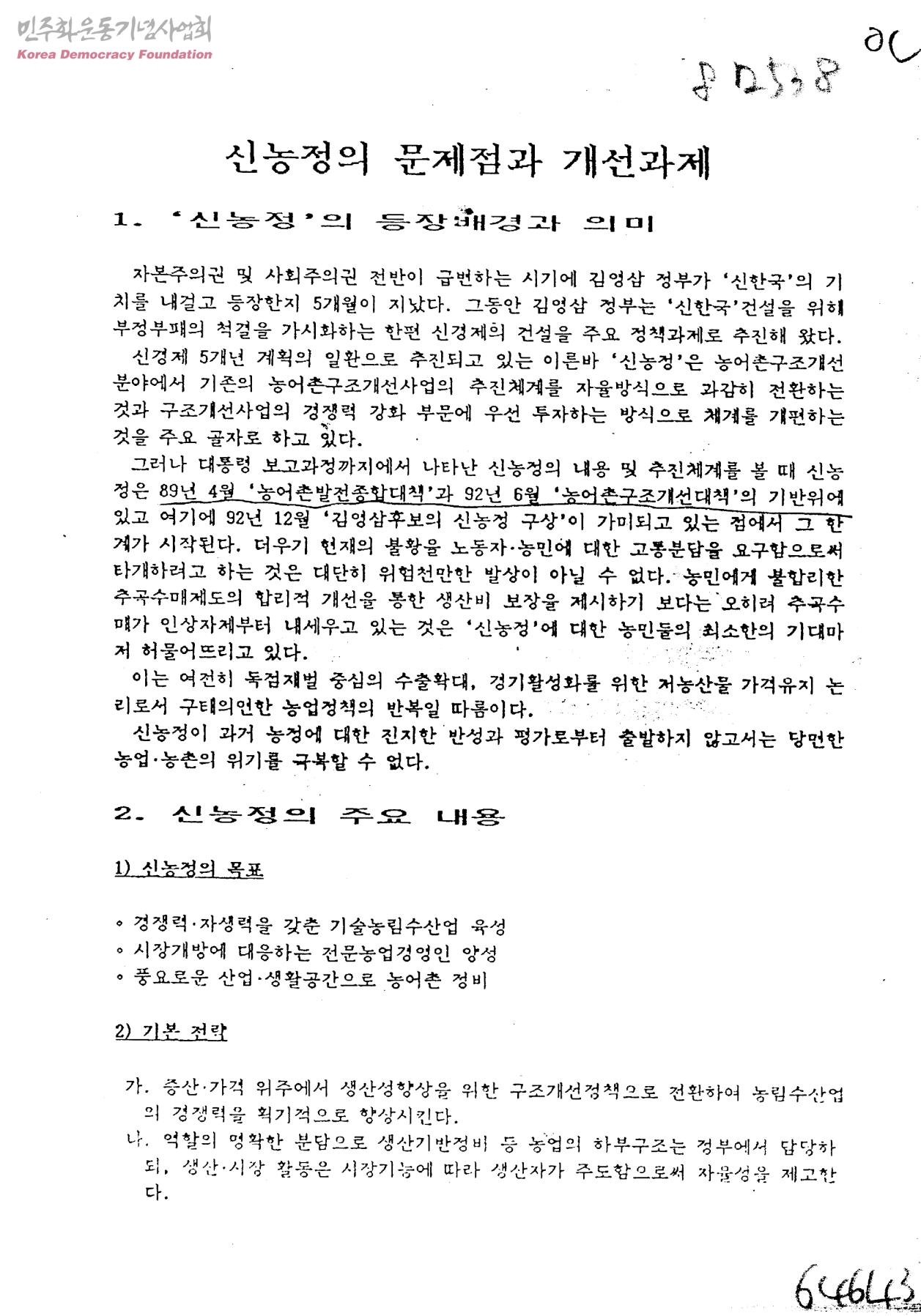 신농정의 문제점과 개선과제