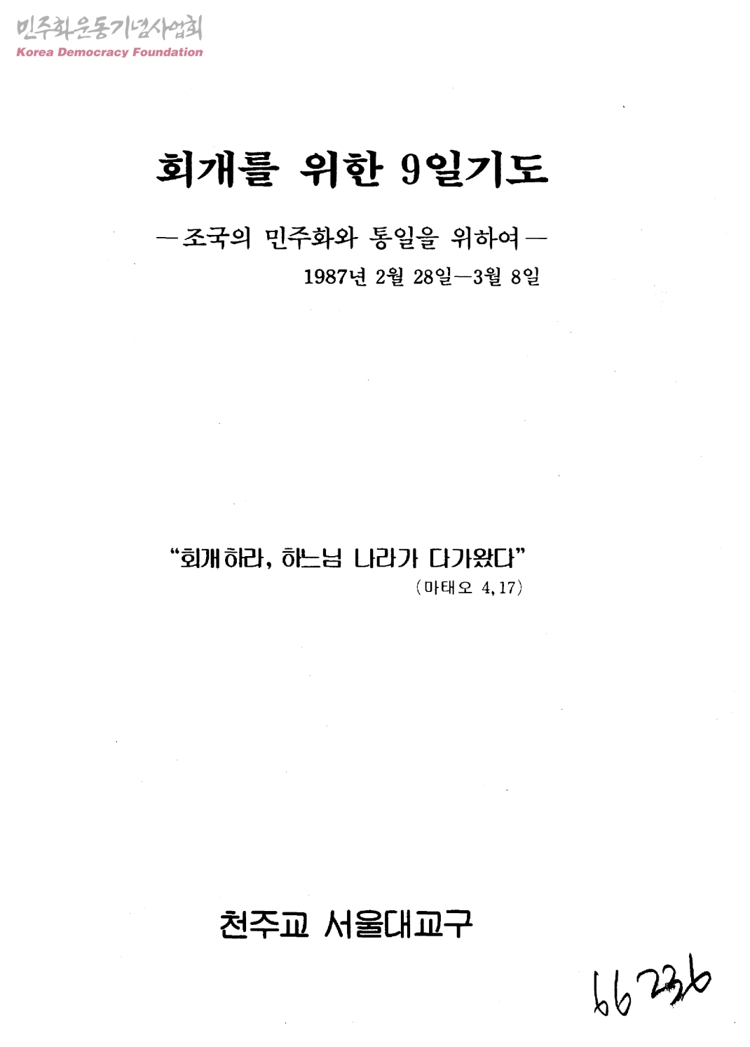 회개를 위한 9일기도-조국의 민주화와 통일을 위하여-