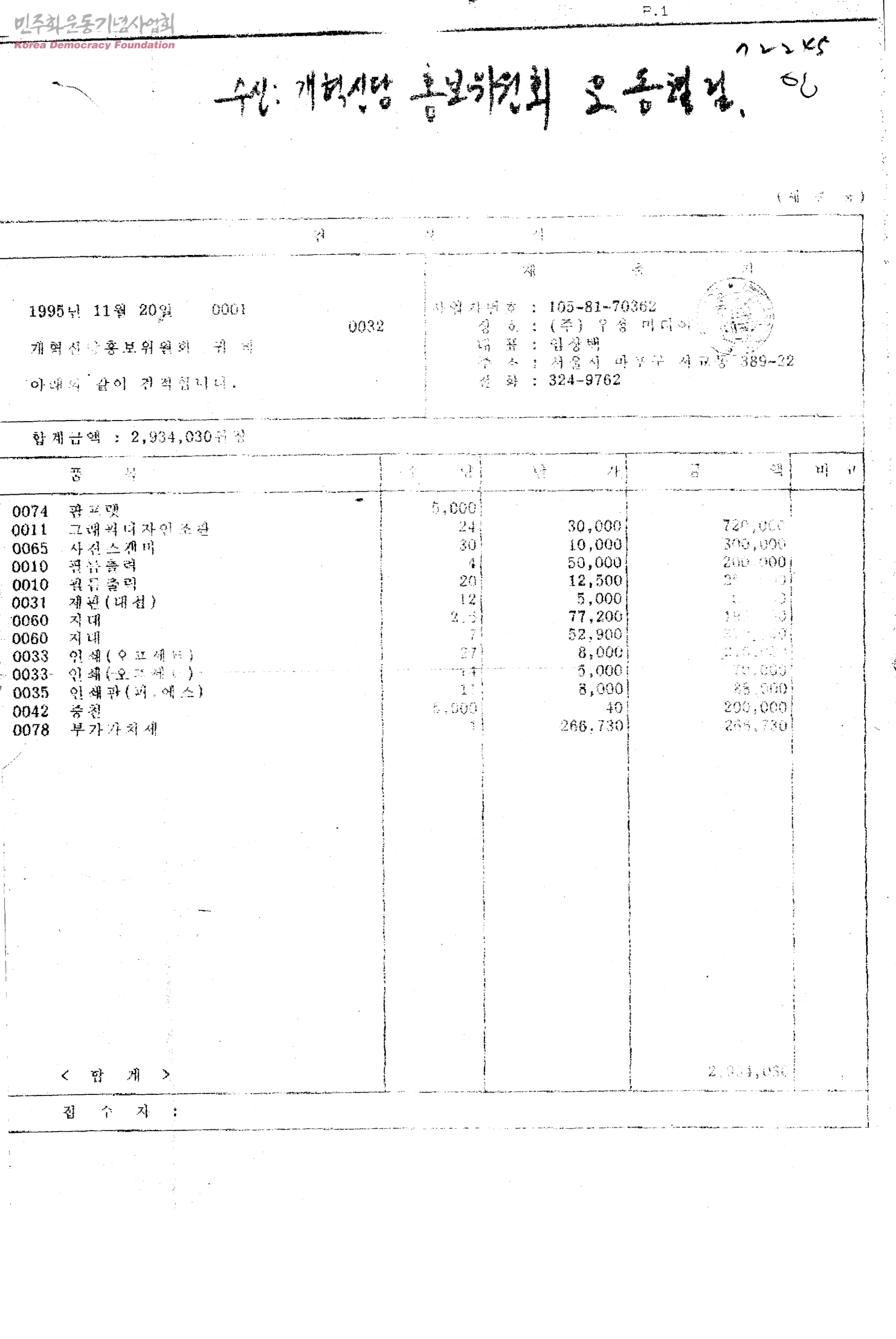 개혁신당 홍보위원회에게 보내는 예산보고서[수신:개혁신당 홍보위원회 오동혈]