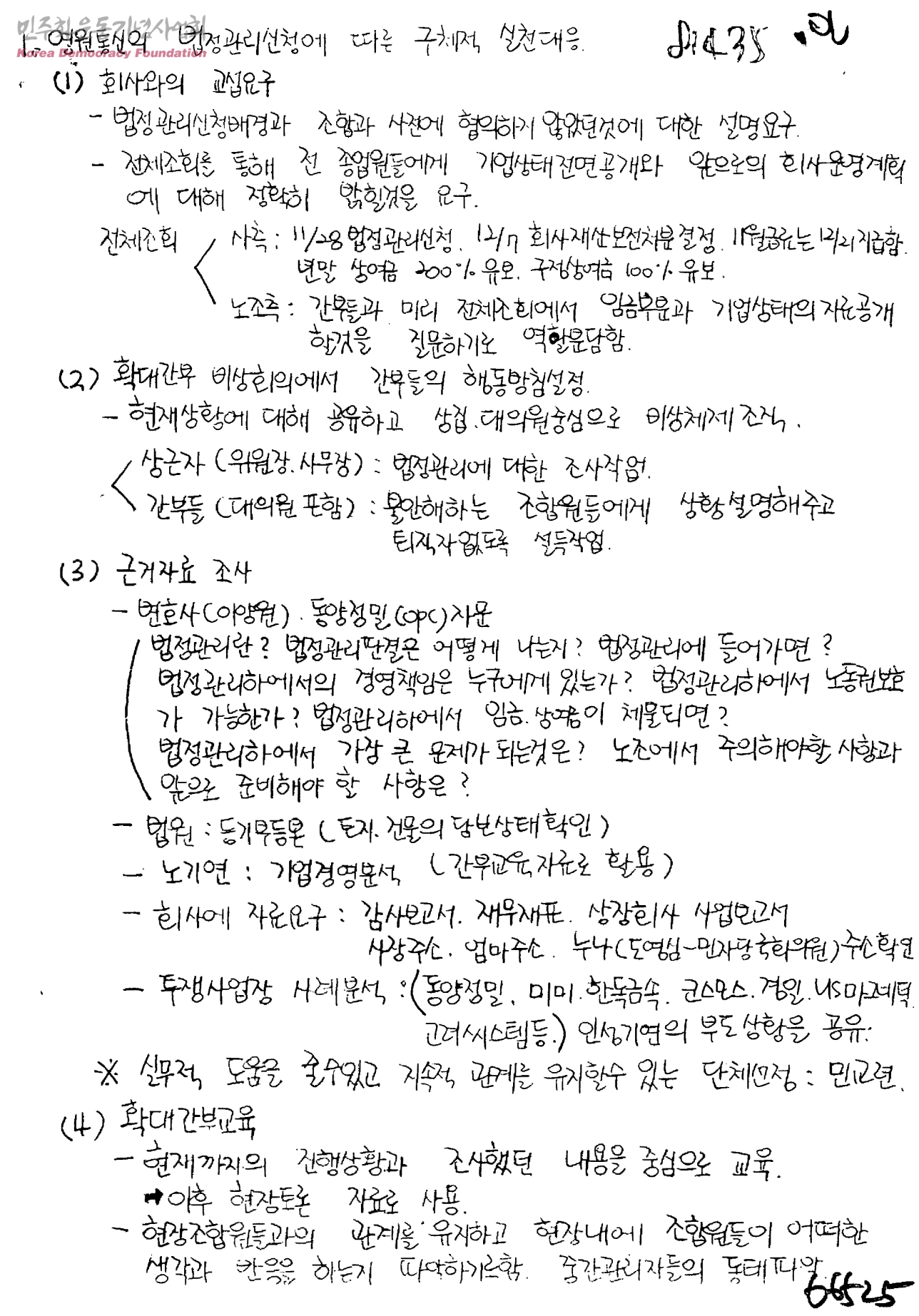 1.영원통신의 법정관리신청에 띠른 구체적 실천대응