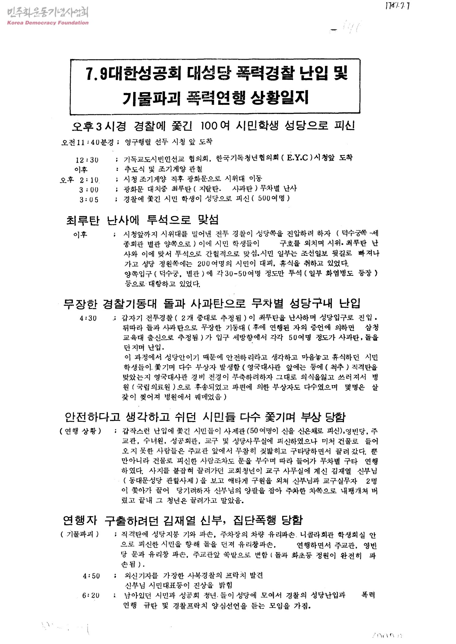 7.9 대한성공회 대성당 폭력경찰 난입 및 기물파괴 폭력연행 상황일지
