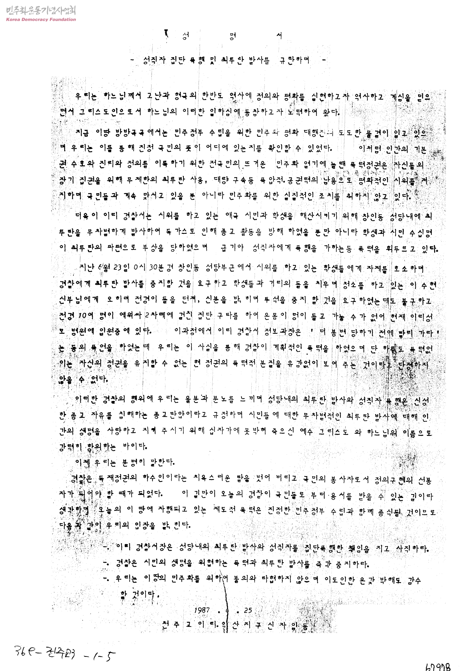 성명서-성직자 집단 폭행 및 최루탄 발사를 규탄하며