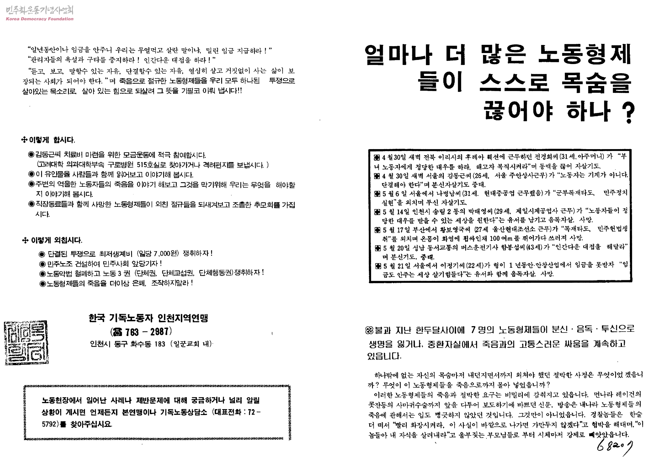 얼마나 더 많은 노동형제들이 스스로 목숨을 끊어야 하나?