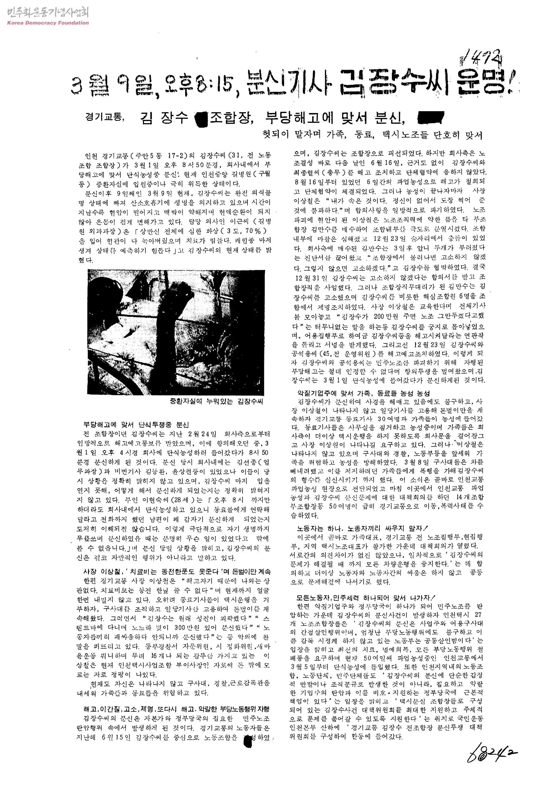 3월 9일 오후8:15 분신기사 김장수씨 운명!