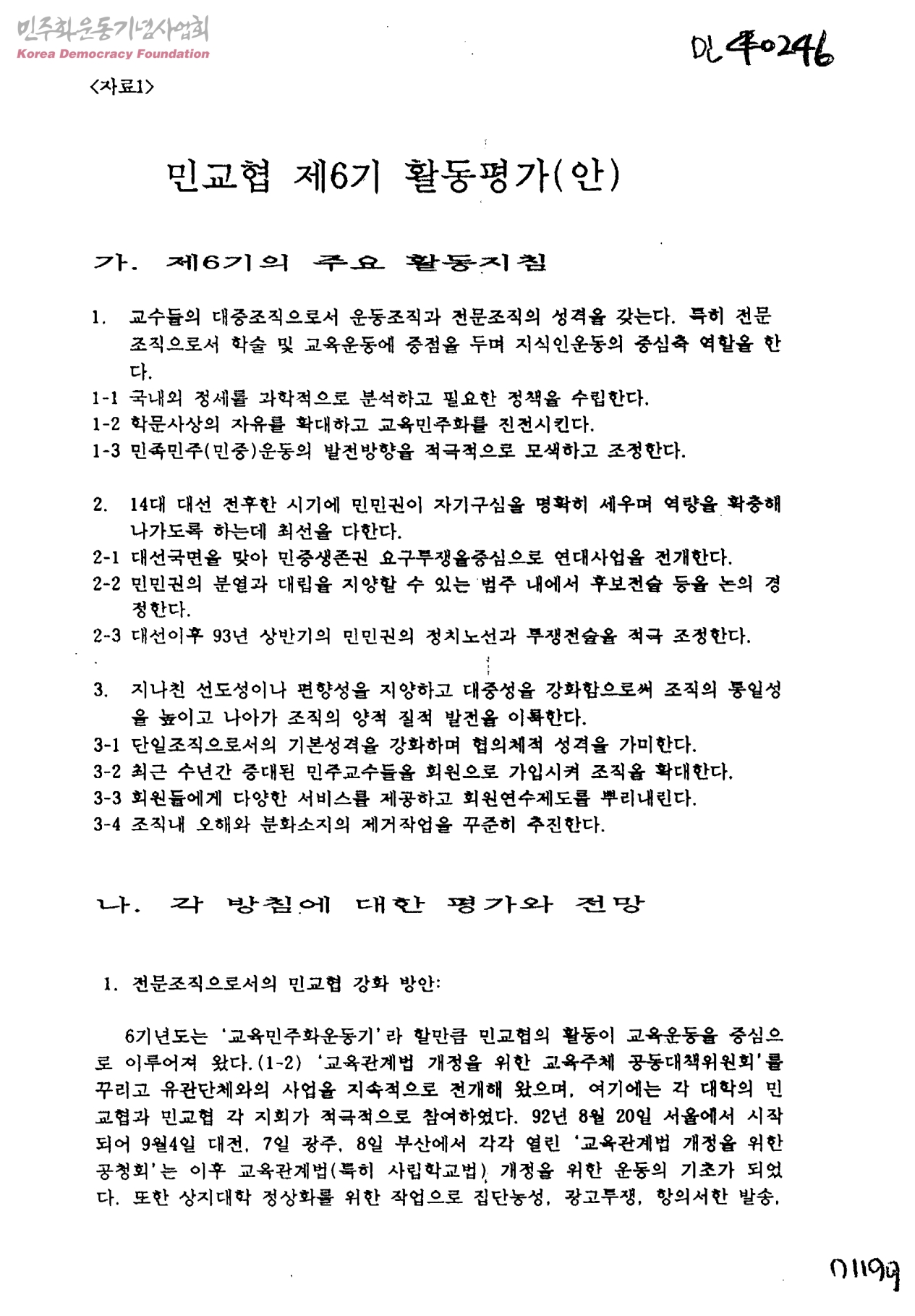 민교협 제6기 활동평가(안)