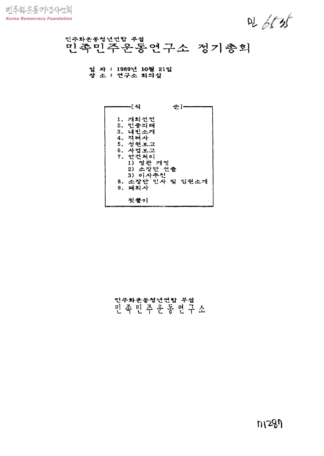민주화운동청년연합 부설 민족민주운동연구소 정기총회