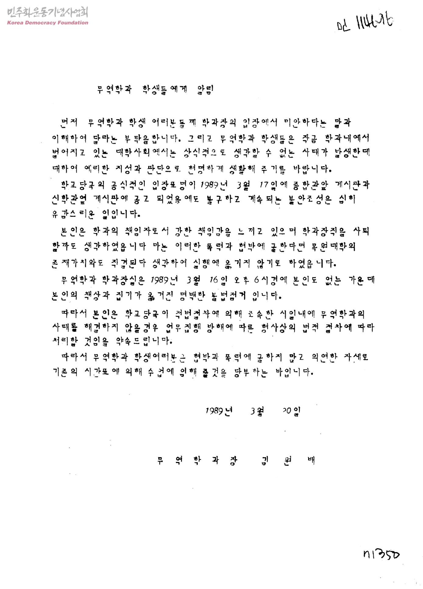 - 목원대학교무역학과장 김원배