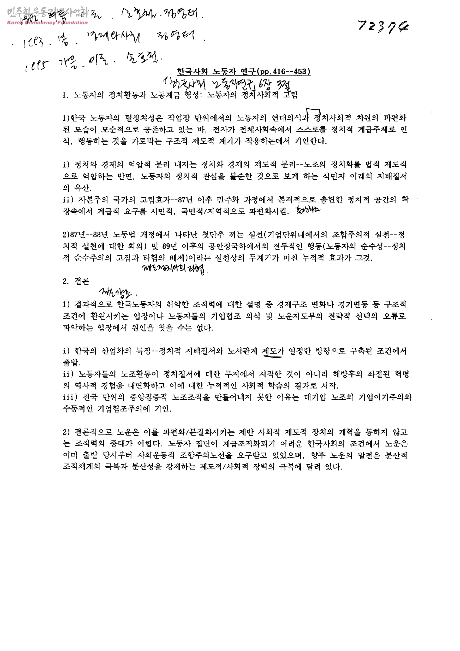 한국사회 노동자 연구