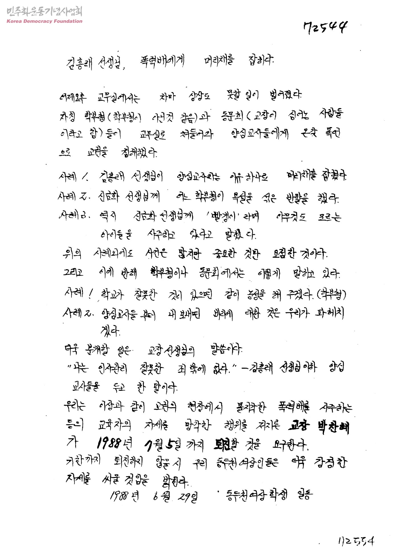 김흥래 선생님, 폭력배에게 머리채를 잡히다