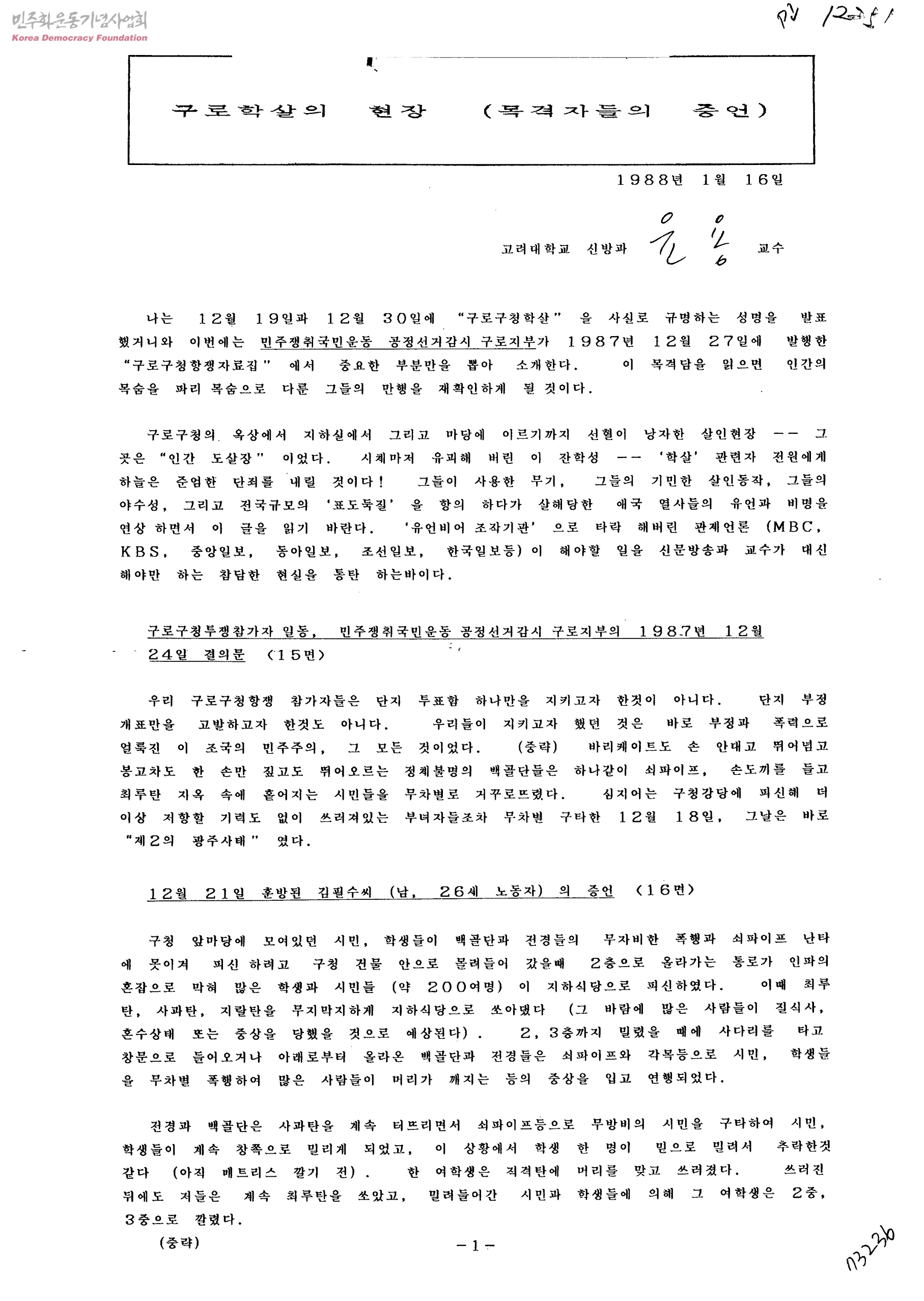 구로학살의 현장-목격자들의 증언