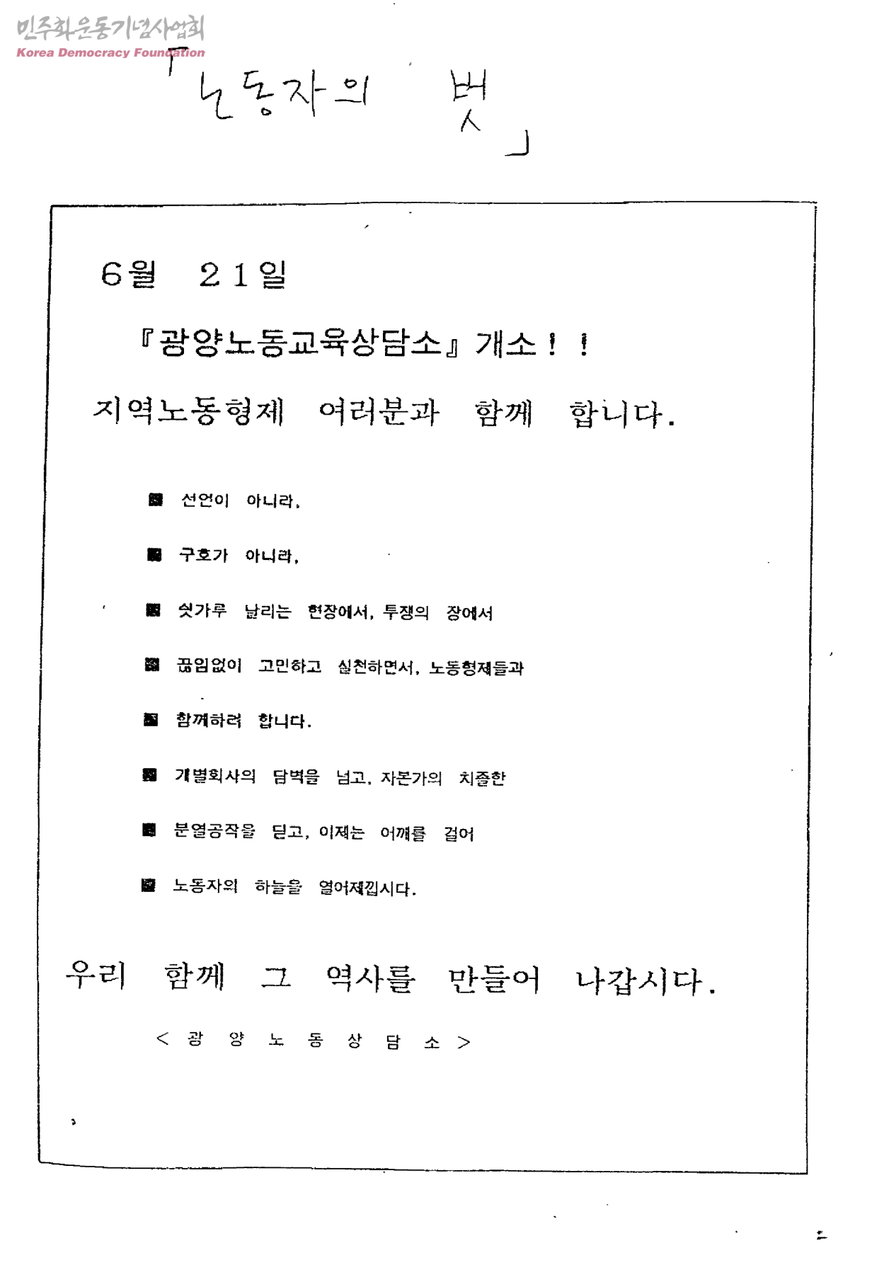 - 광양노동자교육상담소준비위원회