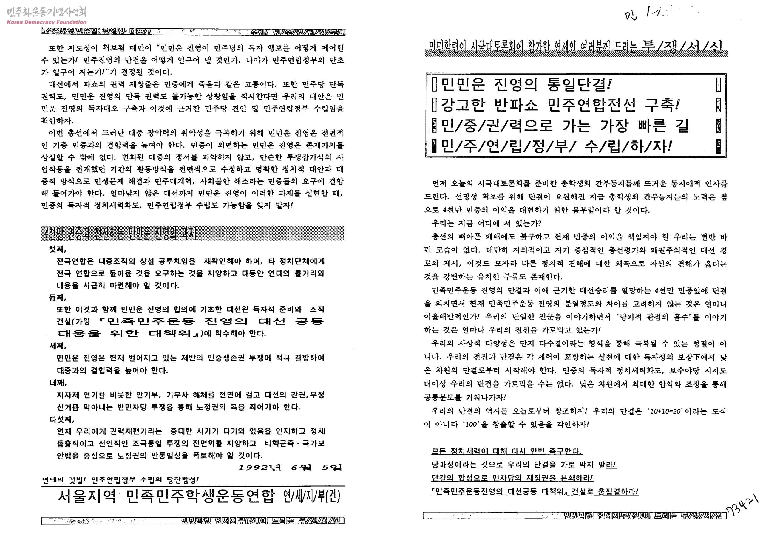 민민학련이 시국대토론회에 참가한 연세인 여러분께 드리는 투쟁서신