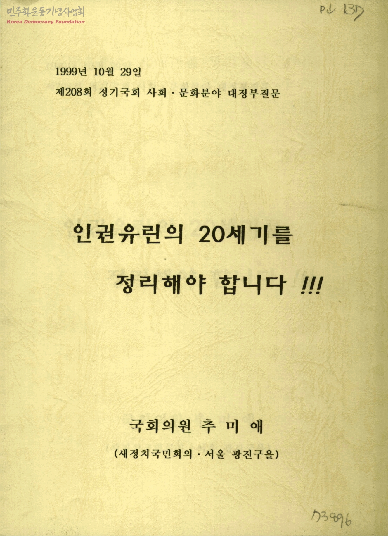 제208회 정기국회 사회.문화분야 대정부질문 인권유린의 20세기를 정리해야 합니다