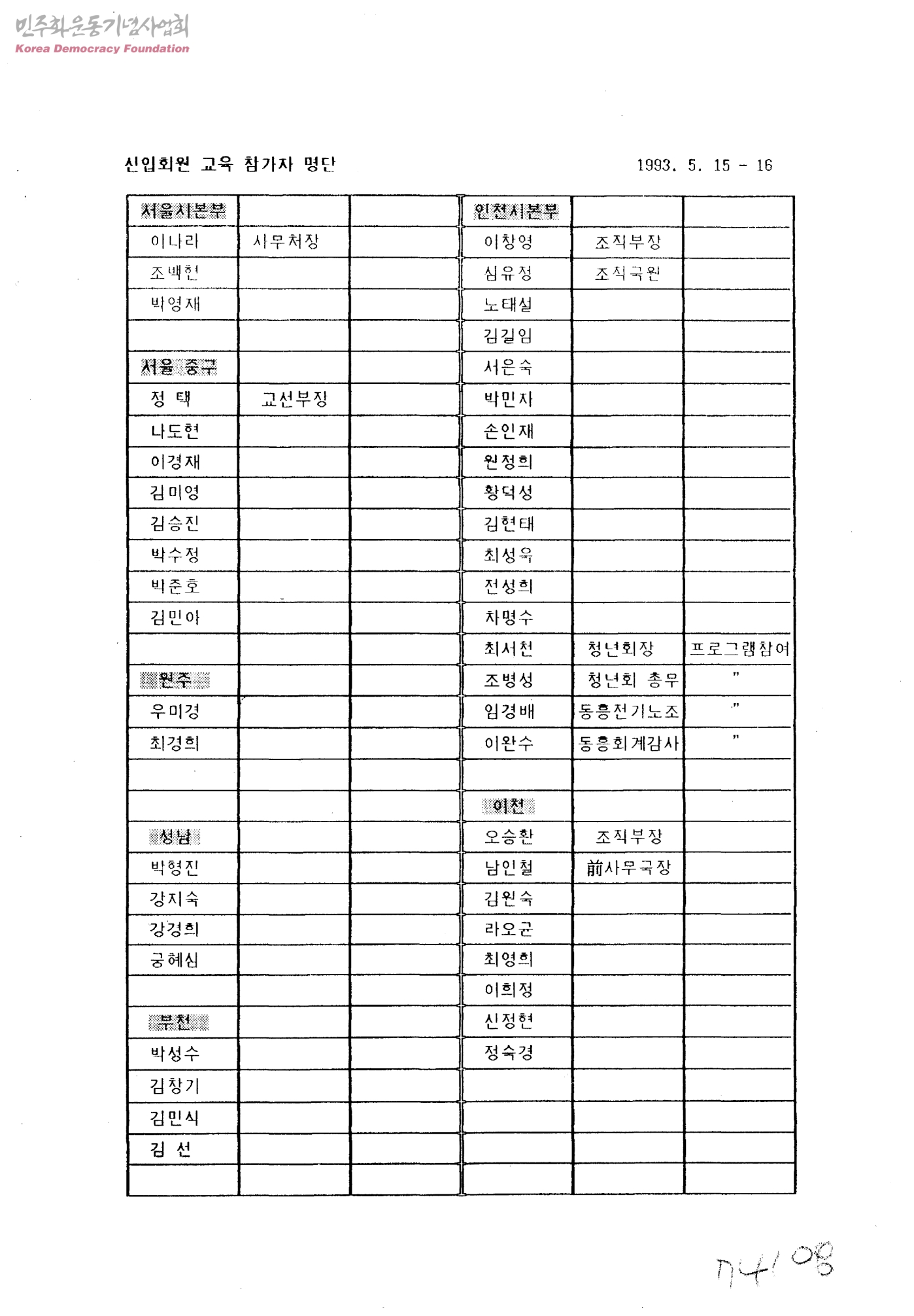 신입회원 교육 참가자 명단